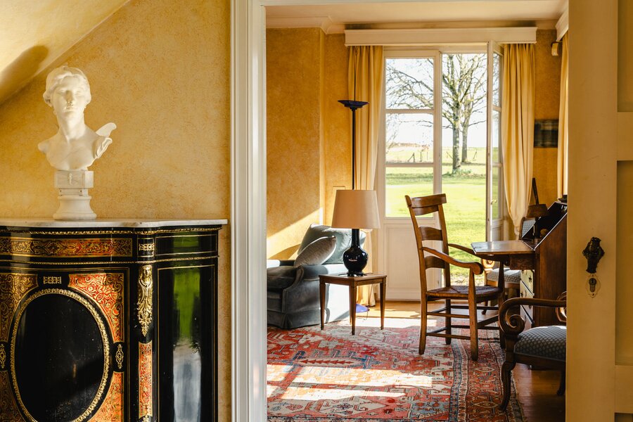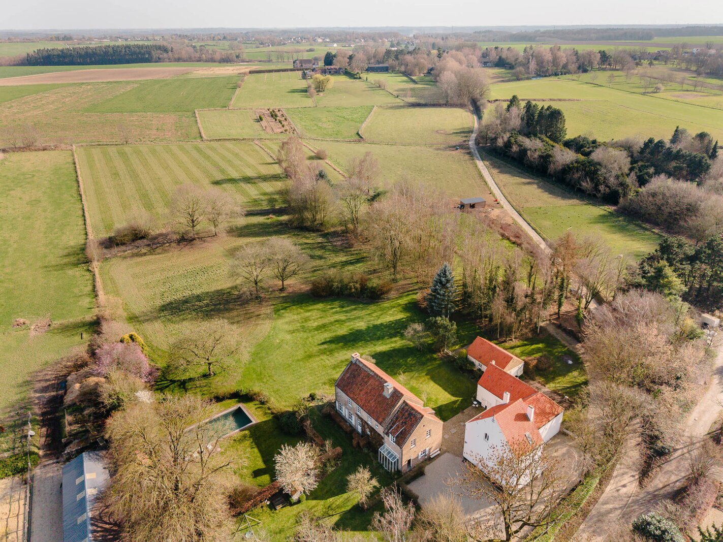 Het landgoed ligt verscholen aan het einde van een weg, aan de rand van de velden, in een ongerepte landelijke omgeving zonder overlast of doorgaand verkeer, en biedt een zeldzame en besloten leefomgeving.