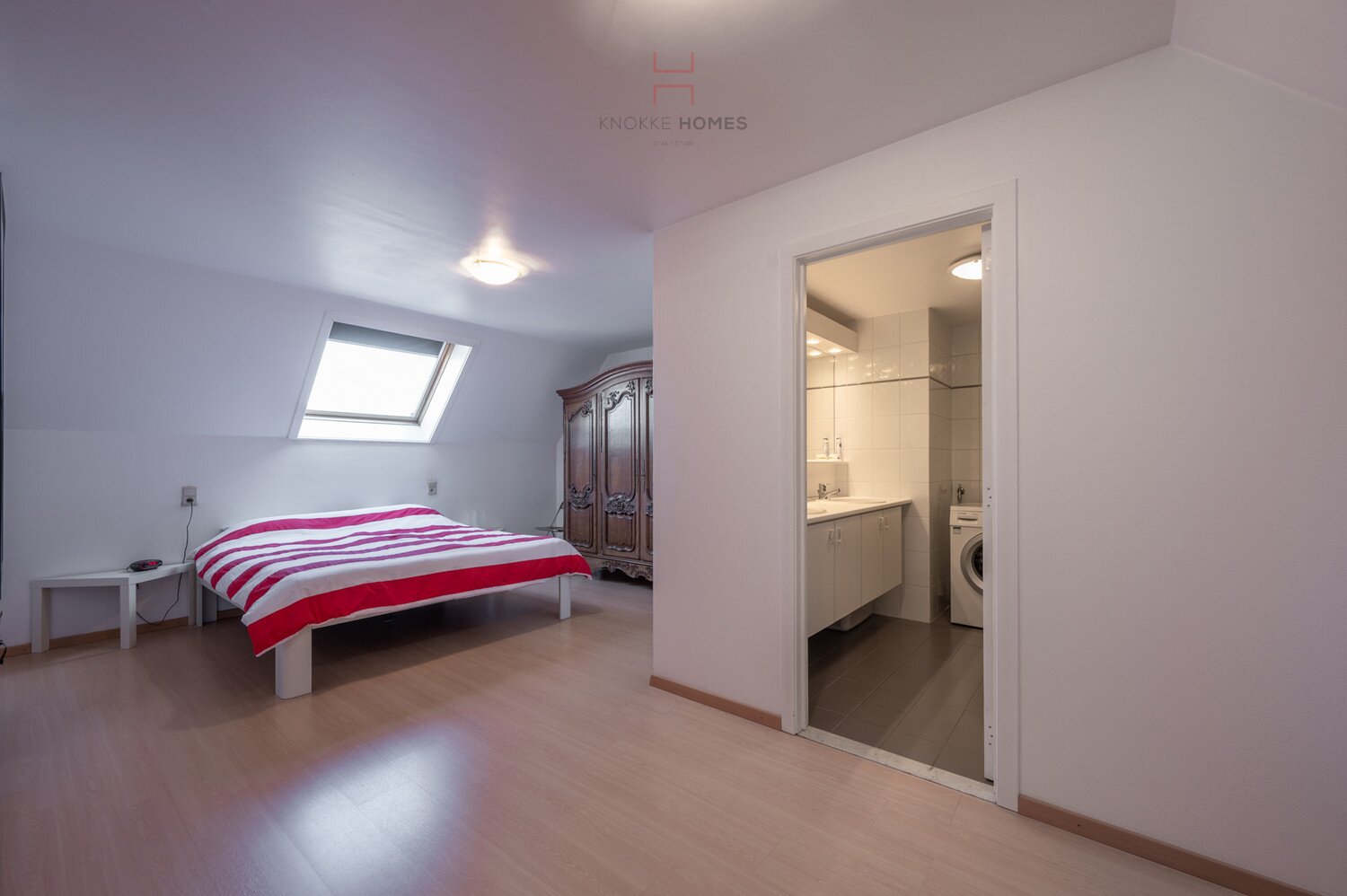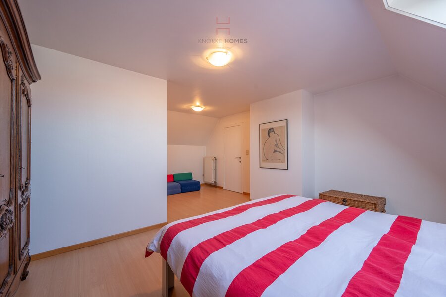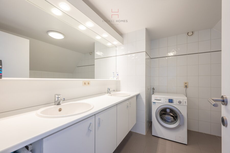 Op de bovenverdieping bevinden zich de hoofdslaapkamer met en-suite badkamer (voorzien van aansluiting voor wasmachine) en twee bijkomende volwaardige slaapkamers, elk met een eigen doucheruimte. Comfort en privacy staan hier centraal.