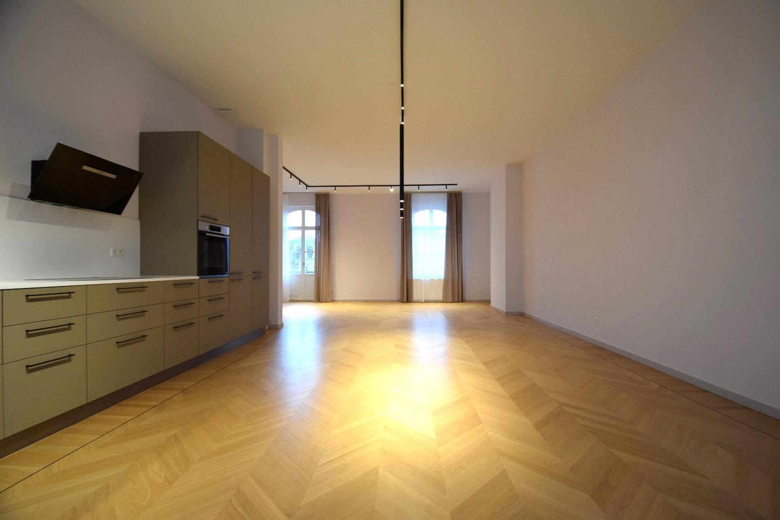 Door de hoge plafonds en vele lichtinval neemt dit appartement u mee in de Parijse sfeer maar met zicht op de Coupure!