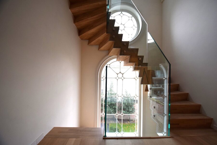 De inkomhall alleen al is prachtig afgewerkt met een imposante trap, en karaktervolle ramen die voor veel lichtinval zorgen.