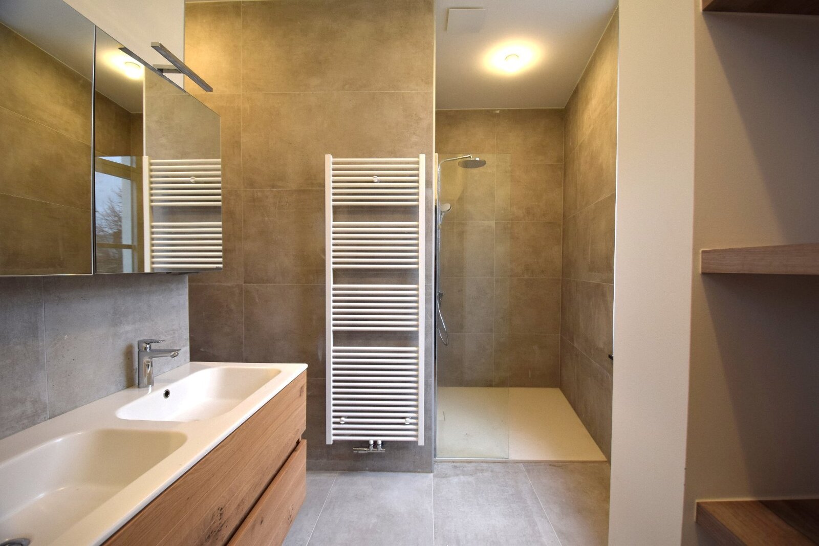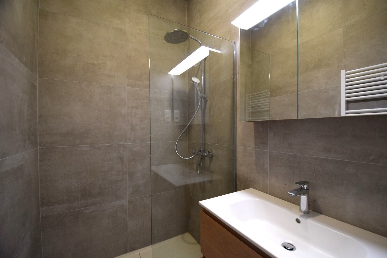 De tweede slaapkamer (17,01m²) heeft zicht op de binnentuin, in de hall kan u ook de tweede badkamer vinden, deze is ook voorzien van een douche en lavabo.