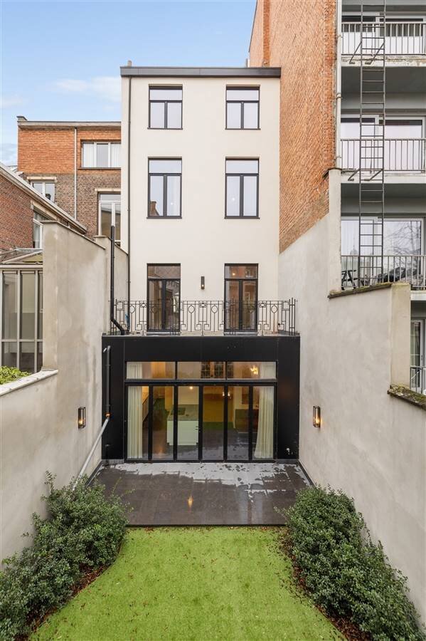 Achter de elegante gevel met karaktervolle voortuin ontvouwt zich een indrukwekkend woonvolume met een bewoonbare oppervlakte van circa 353 m², verdeeld over vier volwaardige verdiepingen en een ruime, volledig droge kelderverdieping.