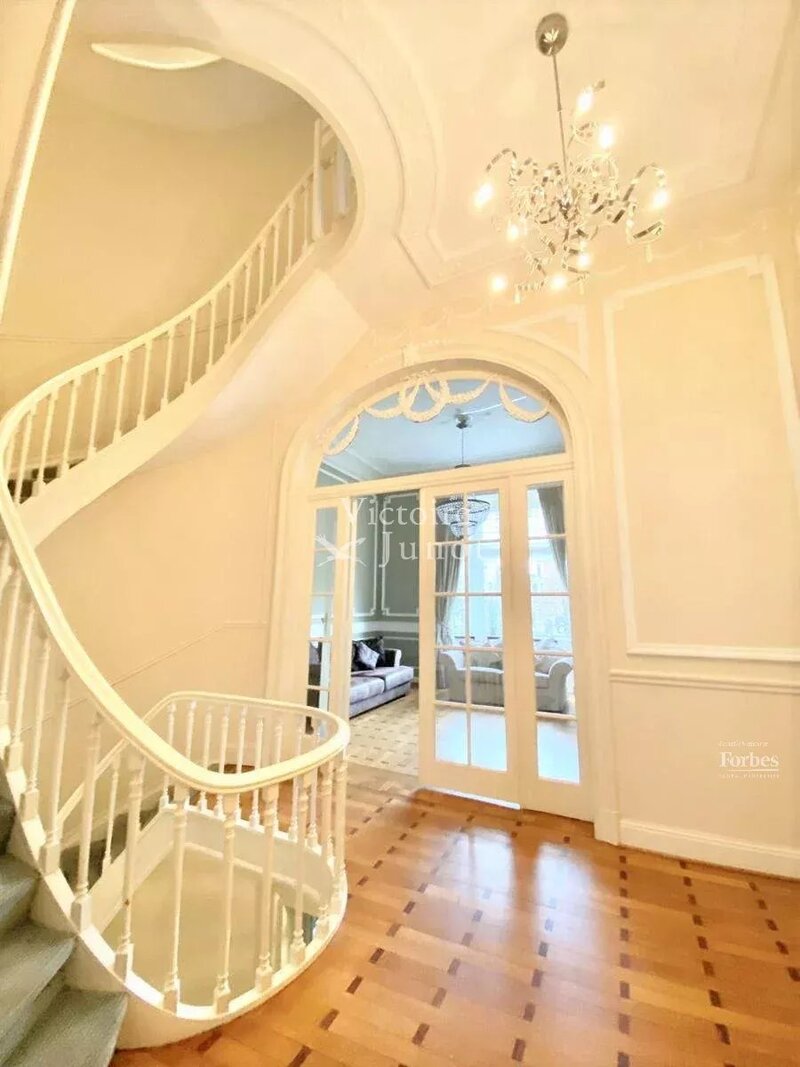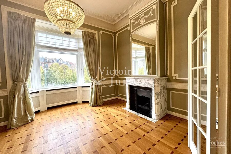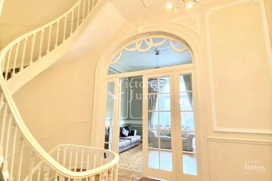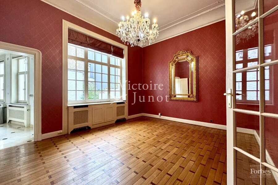 Ideaal gelegen aan een van de mooiste lanen van de hoofdstad, biedt Victoire-Junot dit aangename herenhuis van +- 337 m² - 5 slaapkamers, met een mooie gevel ontworpen door architect Jasinsky. Deze uitzonderlijke woning biedt op de begane grond een ontvangsthal met een majestueuze trap waarop alle woonruimtes zijn verdeeld, waaronder een kantoor, een grote polyvalente ruimte en een wasruimte. Op de eerste verdieping - een lichte zitkamer met open haard, een eetkamer, een keuken en toegang tot een groot terras. Vervolgens zijn de twee bovenverdiepingen verdeeld tussen de master suite met slaapkamer, dressing en badkamer, drie andere slaapkamers en een tweede badkamer. Op de bovenste verdieping bevindt zich een grote slaapkamer / polyvalente ruimte. Kelders. Deze woning is gerenoveerd en combineert de charme van het oude (gemonteerde muren, hoge plafonds, parketvloeren, ...) met modern comfort. Gemakkelijke toegang tot de instellingen van de EU-CEE, het stadscentrum en de luchthaven. EPC G