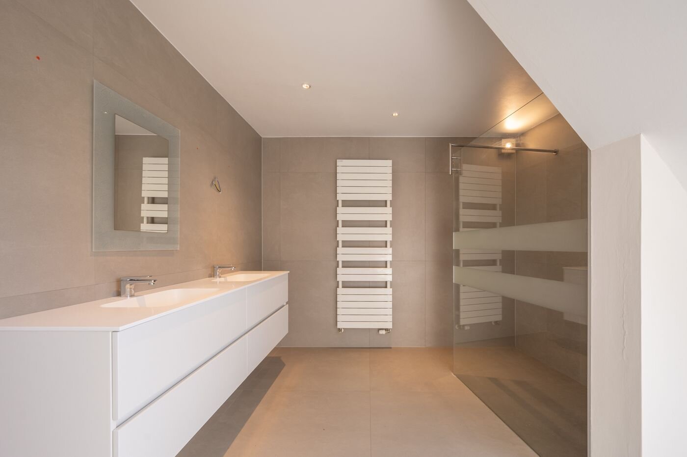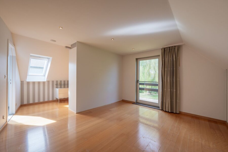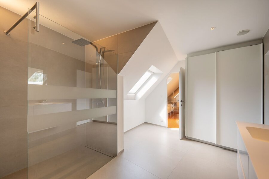 Op de verdieping bevinden zich vier ruime slaapkamers, waaronder een master bedroom met en-suite dressing. De badkamer is royaal ingericht en voorzien van een lavabomeubel, inloopdouche en ingebouwde kasten. Daarnaast is de woning uitgerust met 14 zonnepanelen met groenestroomcertificaten, goed voor een jaarlijkse opbrengst van 1.350 euro (waarvan 450 euro via certificaten) tot december 2029. Tot slot beschikt de woning over een gunstig EPC-label B met een specifiek energieverbruik van 143 kWh/m² per jaar.