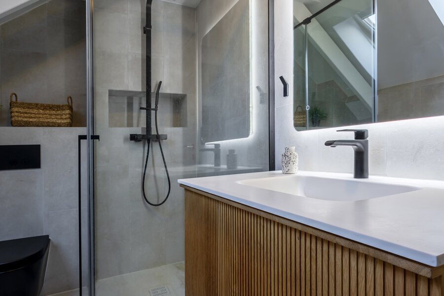 De tweede verdieping beschikt over een volwaardige vierde slaapkamer, een badkamer met bad, douche en lavabo, én een extra polyvalente ruimte die perfect kan dienen als dressing, bureau, hobbyruimte of extra slaapkamer.