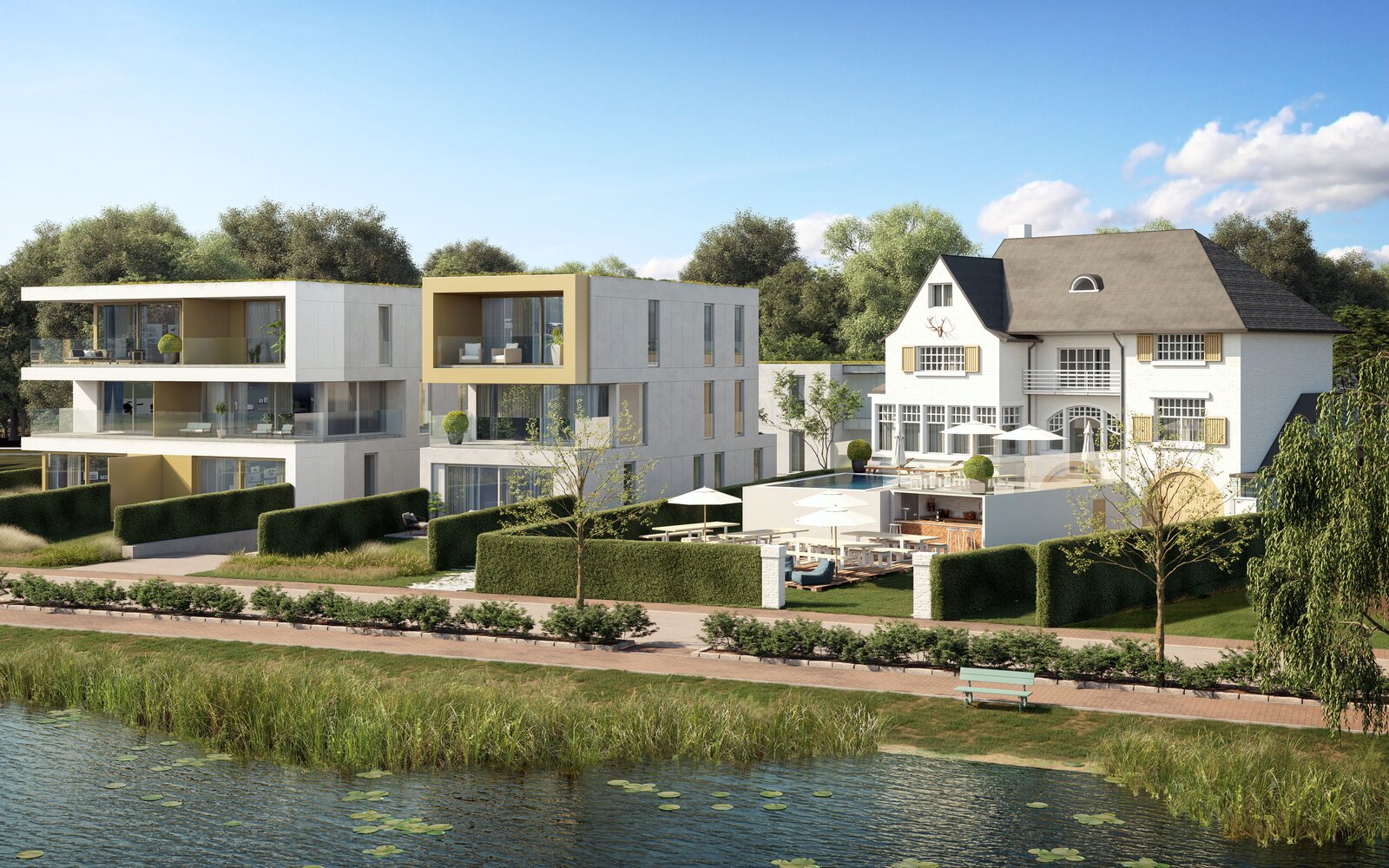 Hertekop is een exclusief project aan de oevers van het Donkmeer in het gezellige Berlare. Hertekop is een combinatie van luxueuze Donk-appartementen, rustige park-appartementen, comfortabele woningen en exclusieve villa's. Hertekop bevindt zich midden in het groen, dicht bij alles. Hier kan je genieten van het bruisende leven in de gemeente en je batterijen opladen in de prachtige natuur.