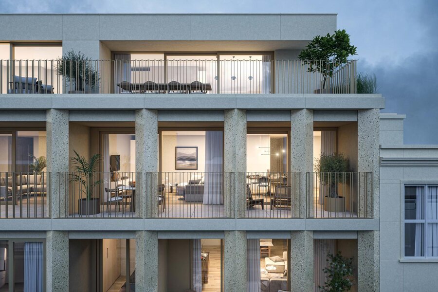 Dit hoogstaande en energiezuinige woonconcept omvat een divers aanbod van 18 appartementen, van compacte studio’s tot luxueuze penthouses. Het gebouw is een ontwerp van de befaamde architect Luc Binst en straalt klasse uit tot in de kleinste details. De afwerking is van hoog niveau, de inrichting gebeurt op basis van jouw smaak en onder deskundige begeleiding.