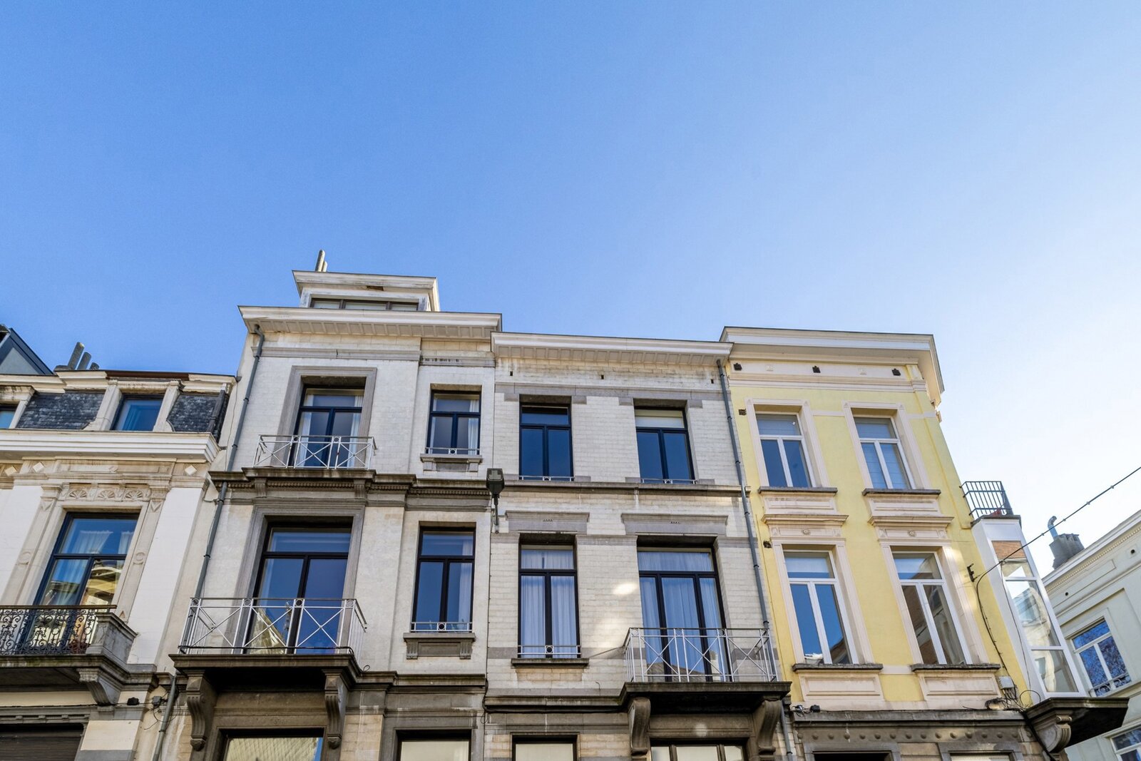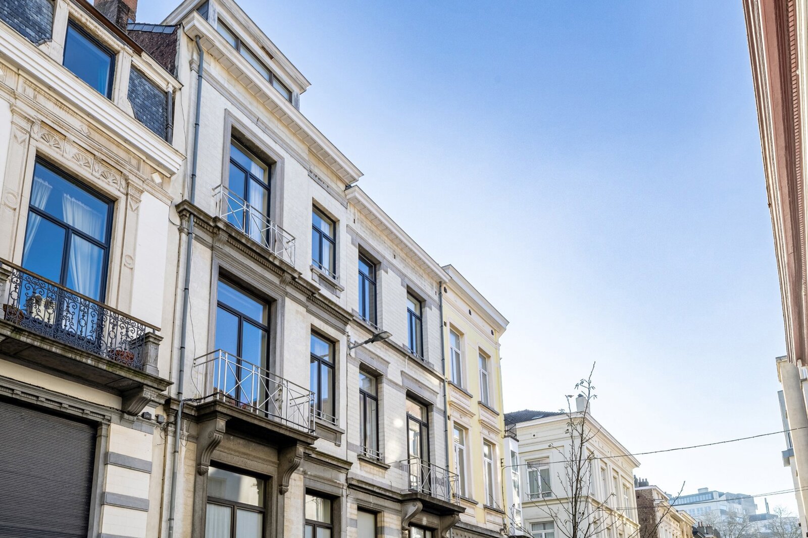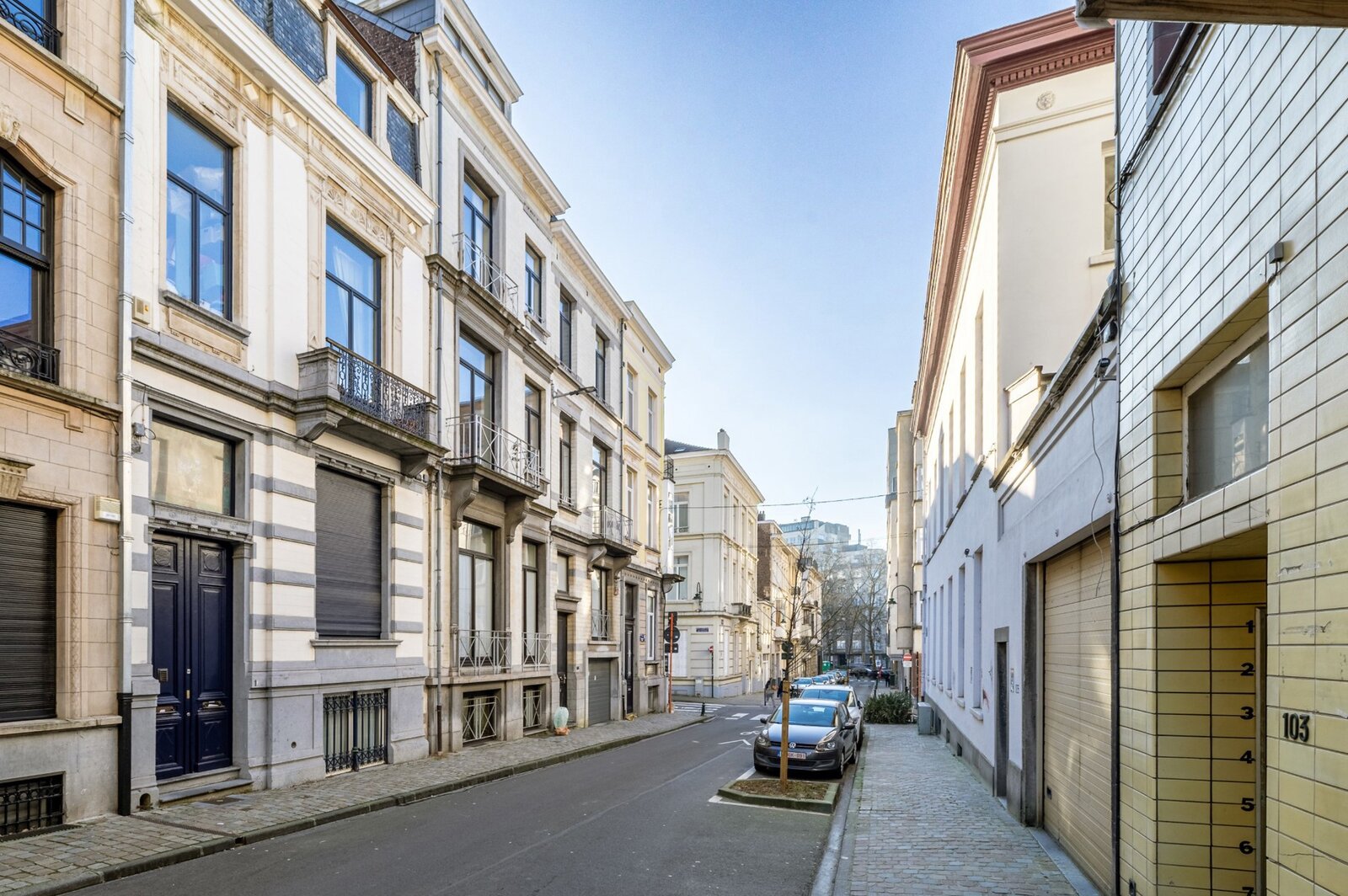 In een rustige straat in de Louizawijk, vlakbij het Stefaniaplein, prachtig duplex penthouse gerenoveerd door architect Joël Claisse, +/- 208 m² + +/- 14 m² terras, op de 3e en 4e verdieping van een prachtig herenhuis. Grote ontvangstruimte, volledig ingerichte keuken, 3 slaapkamers waaronder een grote master suite, 2 badkamers. 2 parkeerplaatsen. Kelder. EPC F (ondanks zeer goede isolatie).