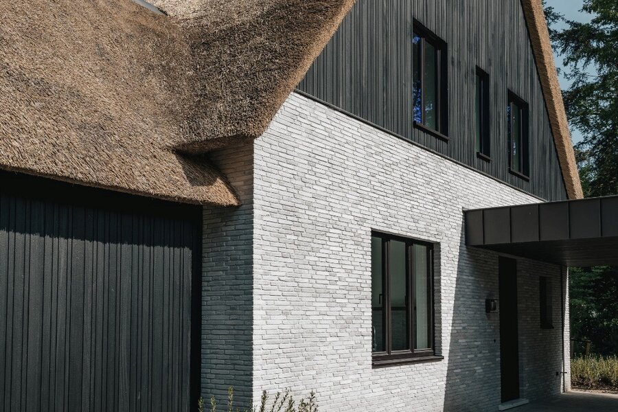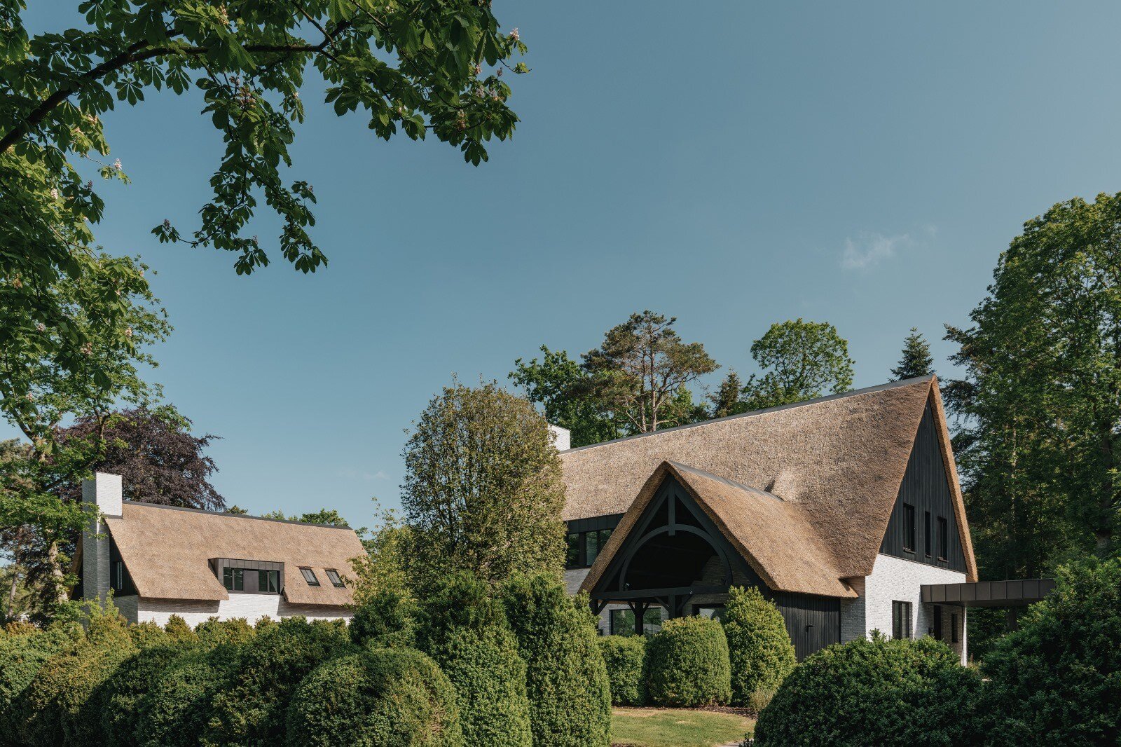 Op een gunstige locatie staat deze eigentijdse riet gedekte villa op een perceel van ca. 1.872m².