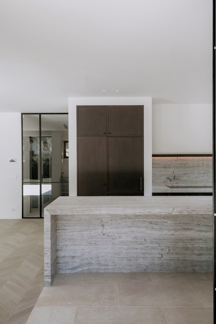 Indeling, entree met gastentoilet en vestiare, wasplaats en technische ruimte, heel ruime en lichte leefruimte met open keuken welke grenst aan een genereus overdekt terras.
