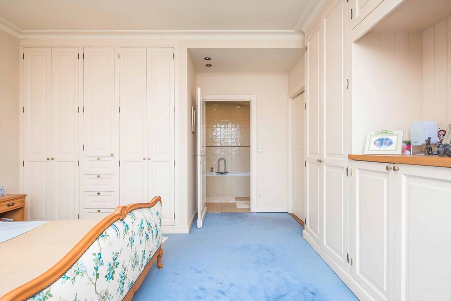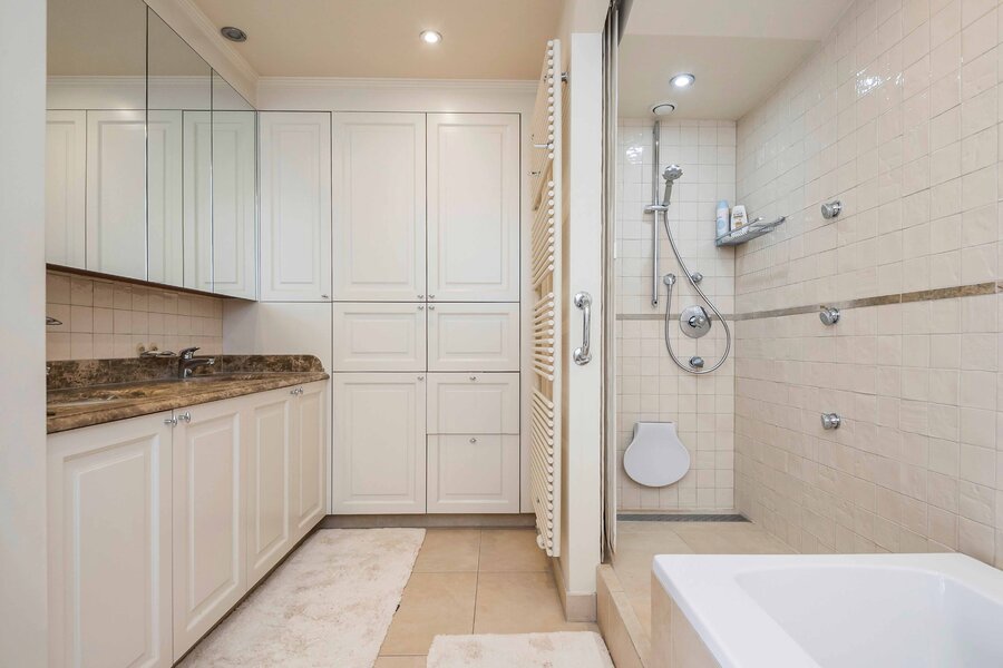 In een groene omgeving en tevens vlakbij het centrum van Wilrijk ligt service residentie Elsdonck. Omringd door buurtwinkels, het openbaar vervoer en parken zoals Steytelinck en Middelheim waar het heerlijk wandelen is. Het leven is hier praktisch en aangenaam. Gelegen op de 4de verdieping van dit standingvolle complex treffen we dit dubbelappartement. Via de inkomhal met gastentoilet op Franse steen komt men in de ruime living (ca. 50m²) op parket, uitgevend op de grote terrassen. Aanpalend de keuken met ontbijtplek. Verder omvat het appartement 2 ruime slaapkamers met ingemaakte kasten. De hoofdslaapkamer heeft een en-suite luxe badkamer met dubbele wastafel, ligbad, inloopdouche, toilet en ingemaakte kasten. Verder is er nog een ruime douchekamer met enkele wastafel en douche. Een afzonderlijke wasruimte met aansluitingen voor was/droogmachine. De ruime terrassen van ca. 50 m² zijn Zuidwest georiënteerd en uitgerust met een brede zonnewering en 2 bergingen BER34 en BER 35 van 8m2 die op het terras uitgeven. De penthouse beschikt over 1 garagebox nr.15 (optioneel). Binnen de Residentie beschikt men eveneens over een mooi binnenzwembad, fitnessruimte, een grote tuin met vijver, restaurant en gezellige verblijfsruimtes, EK conform.