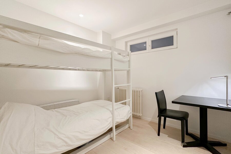 Er zijn 3 slaapkamers. 2 Slaapkamers geven uit op een zonnig terras aan de achterzijde. De hoofdslaapkamer beschikt over een eigen douchekamer. Aparte douchekamer voor de 2 andere kamers. 3e slaapkamer waar momenteel een stapelbed is met een bureauhoekje.
