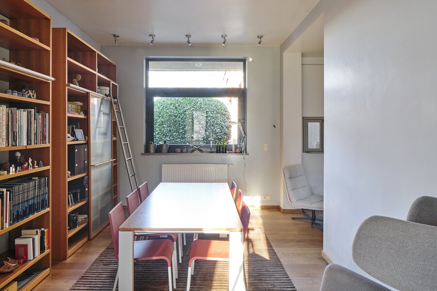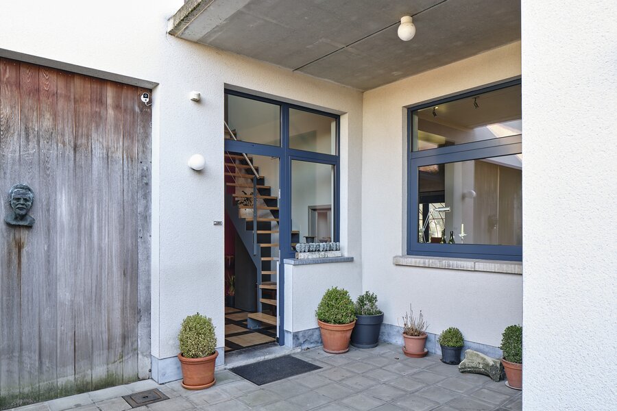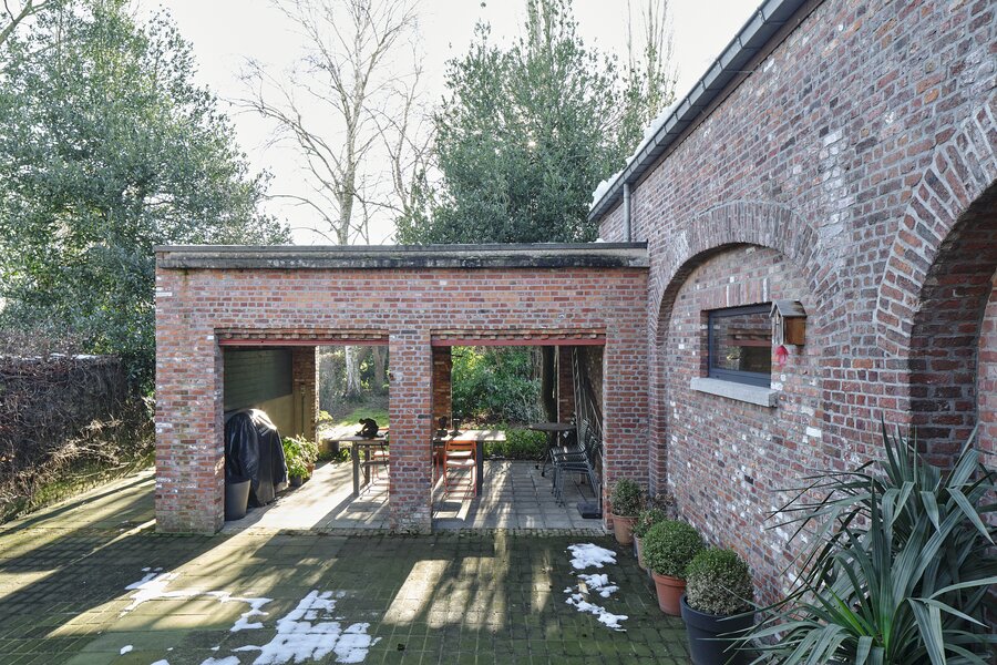 Verbouwing van historisch pand zijnde een voormalige industriële ‘Melkerij' uit 1920 en eigen woning van interior architect Flor Bernar. Resultaat is een ruim, stijlvol en modern polyvalent gebouw (bewoonbare opp 426 m²) op een mooi perceel (2.072 m²) omgeven door natuur met inclusief 2 organisch in het geheel geïntegreerde maar aparte comfortabele woningen. Indeling van de ruimtes is doordacht zowel stilistisch als qua maximale besteding van beschikbare oppervlaktes met veel oog voor functionaliteit en opbergmogelijkheden. Grote ramen trekken mooi gefilterd daglicht binnen en het geheel straalt rust en evenwicht uit. Modern wooncomfort in een gebouw met een diepe ziel. De 2 woonunits zijn ideaal naar invulling toe als kangoeroeconcept, combi wonen of een andere creatieve vorm van gemengd gebruik. Beide units zijn compact maar perfect in orde met telkens op de benedenverdiepingen keuken en leefruimtes en boven de slaapvertrekken (7 in totaal) en de badkamers (4 in totaal). Woning 1 heeft ook boven een zithoek/bibliotheek met zicht op groen. Woning 2 heeft aanpalend aan de leefruimtes een zeer mooie originele serre in smeedwerk die geïntegreerd is in de moderne architectuur. De grote polyvalente zaal is perfect in orde en zeer geschikt voor happenings, feesten of events. Beide woningen kunnen gebruik maken van een royaal en zeer aangenaam terras met vergezicht op de grote tuin en de omringende natuur. Voorts is er zowel aan voor- als zijkant ruime parkeergelegenheid. Heel veel mogelijkheden hier voor uitsluitend privé in verschillende varianten maar zeker ook voor een mix privé met een stijlvolle commerciële uitbating of uiteraard ook als project voor creatieve ondernemers en slimme investeerders. Vlotte verbinding met hoofdwegen. Voorzieningen en dorpskern vlakbij in het prachtige kader dat De Kempen heet met onbeperkte mogelijkheden voor natuurwandelingen, recreatie, sport, rust en het goede leven. Opportuniteit.
