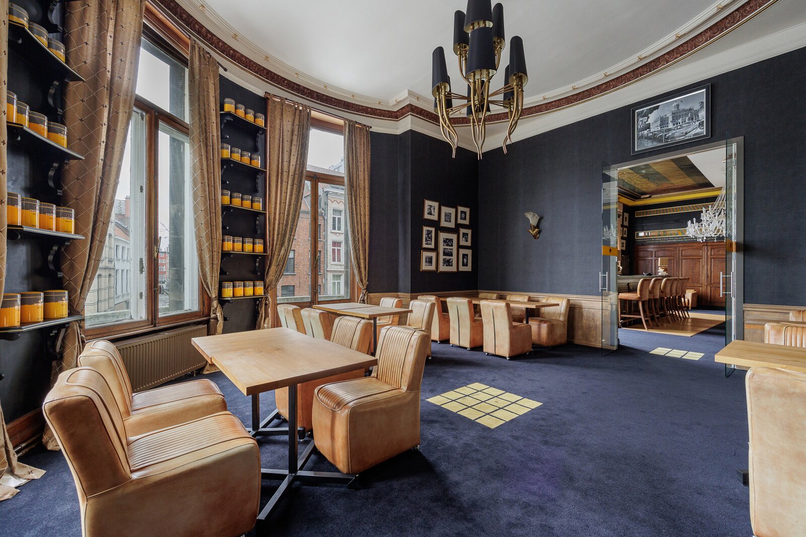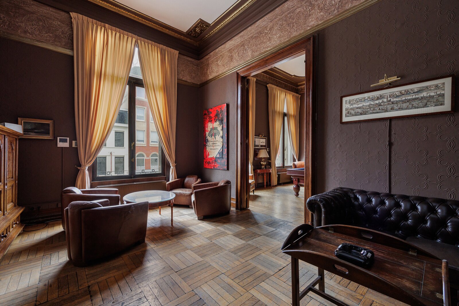 In het monumentale Hansahuis, ingehuldigd in 1903, een van de belangerijkste ankerpunten van de Scheldekaaien, vindt u deze riante ruimte, momenteel als kantoor maar eveneens om te vormen naar een uitzonderlijk appartement.