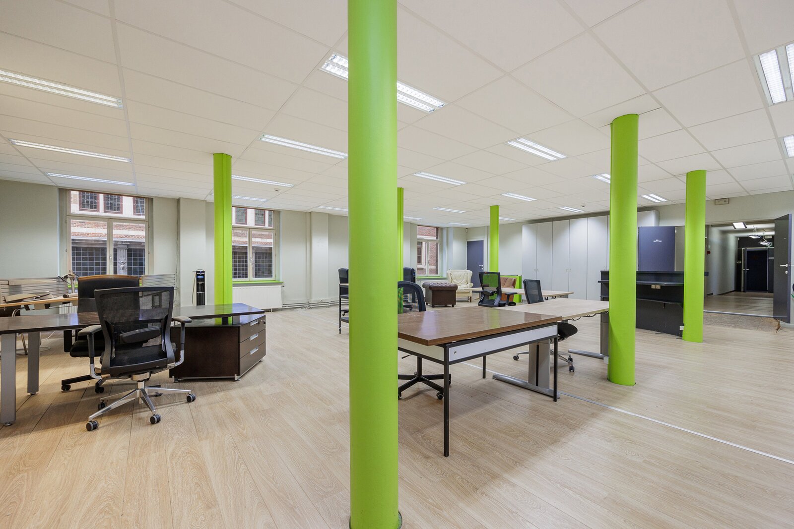 De kantoorverdieping kent in haar authenticiteit verschillende soorten werkplekken: schitterende ontvangstruimte, wachtkamer, sfeervol salon met parketvloer, houten lambriseringen en een mooie bar, vergaderzaal, moderne landschapskantoren....