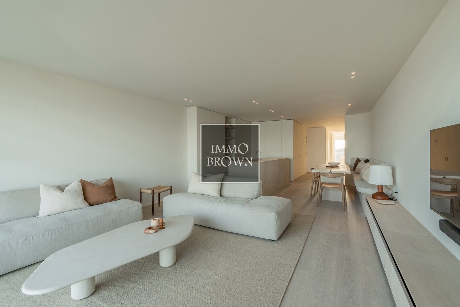 Prachtig gerenoveerd doorloopappartement op de wandeldijk in het Zoute, met frontaal zeezicht en de duinen.