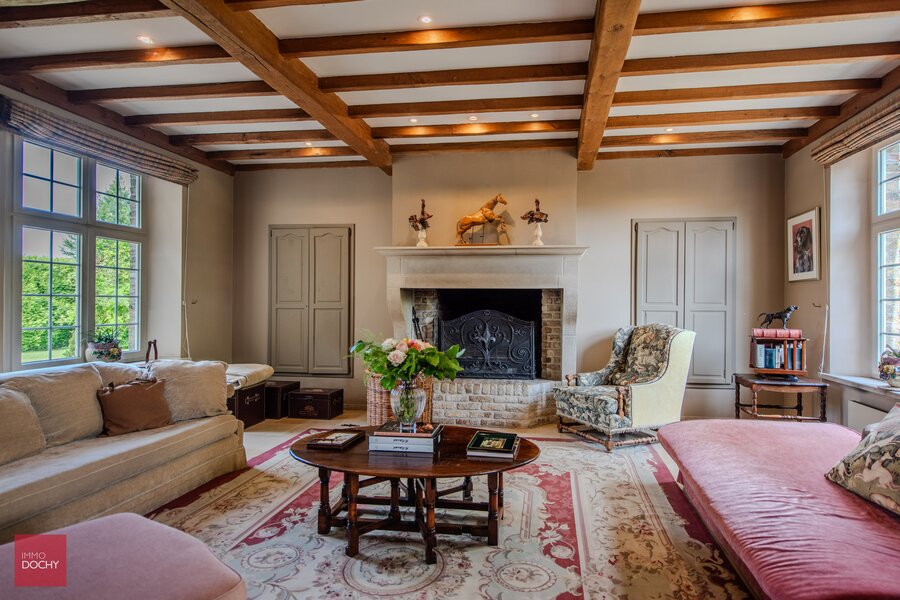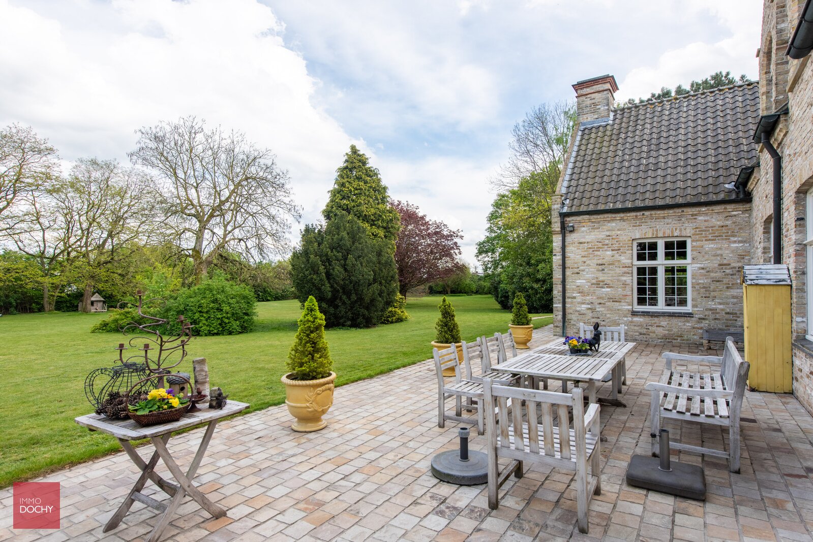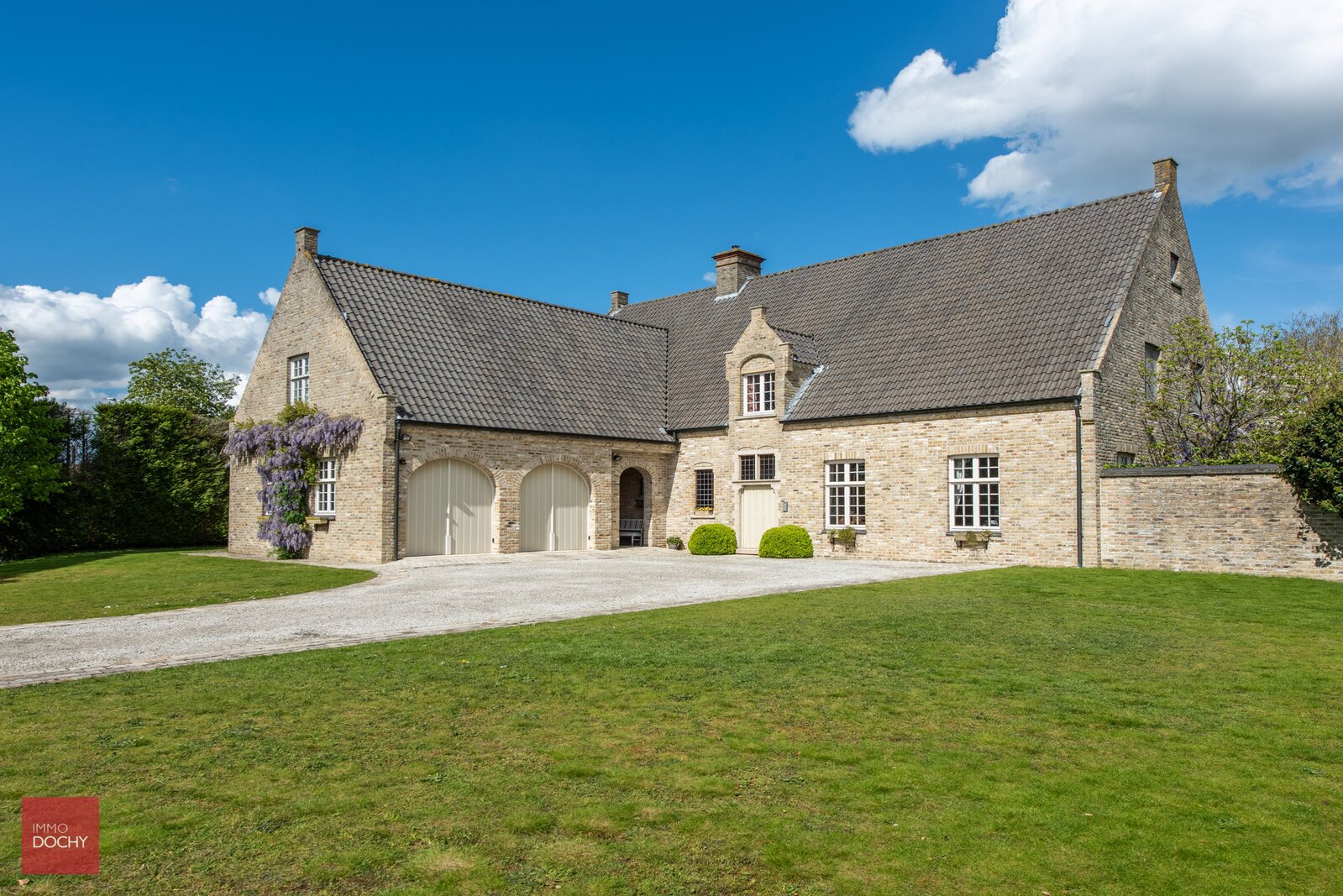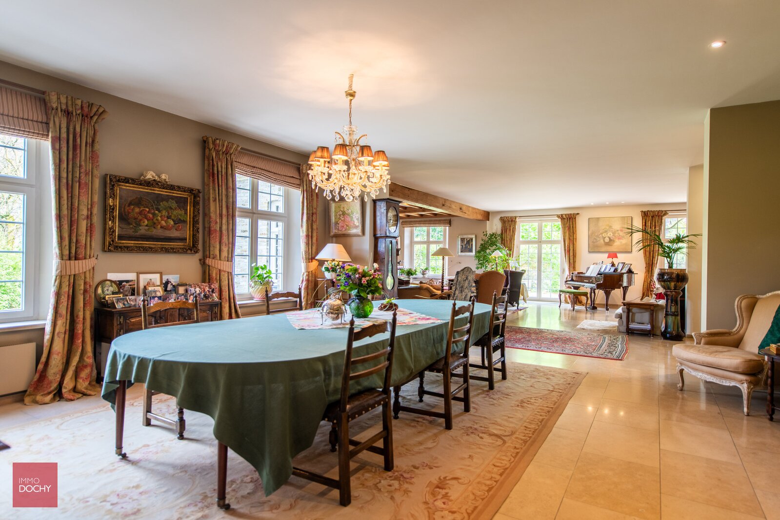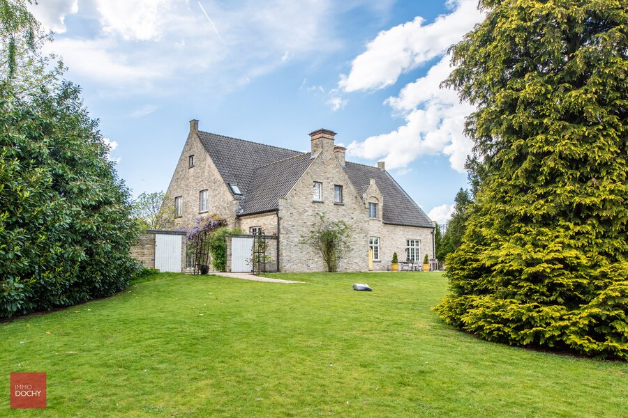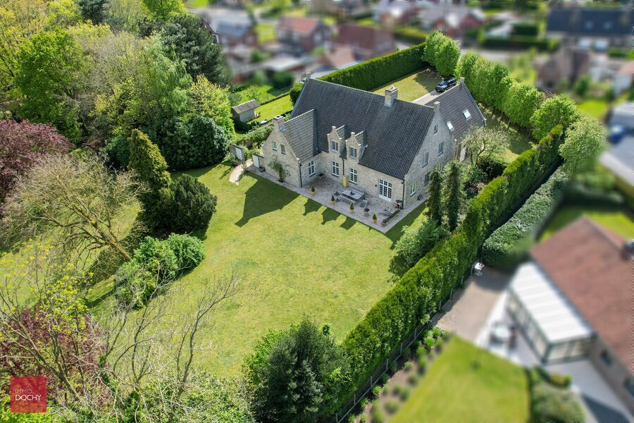 Ruime villa op ca. 4.500m² bestaande uit inkomhal, ruime living met open haard, bibliotheek en eetplaats, ruime ingerichte keuken, wasplaats, berging, 6 slaapkamers en badkamer. Dubbele garage met hobbykamer (mancave) boven deze garage, volledig onderkelderd, zolder, terrassen en zeer mooie tuin. Mogelijkheid +/- 5.500m² aangelegde tuin met grote tuinberging bij te kopen (woonuitbreidingsgebied).