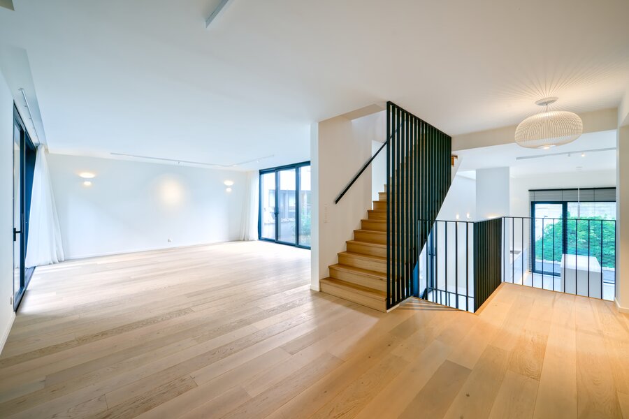 Met een bruto oppervlakte van 468 m² opent het pand zich met een mooie inkomhal, lichte ontvangstruimtes met indrukwekkende plafondhoogtes en een volledig uitgeruste Amerikaanse keuken, verlicht door een groot raam en een lichtkoepel. De woning biedt vier ruime suites, waaronder een grote oudersuite met een terras, een complete badkamer en die een hele verdieping inneemt, een ruimte gewijd aan de uitoefening van een vrij beroep, een wellnessruimte met sauna (optionele uitrusting), verschillende terrassen, een groendak en een charmante tuin.