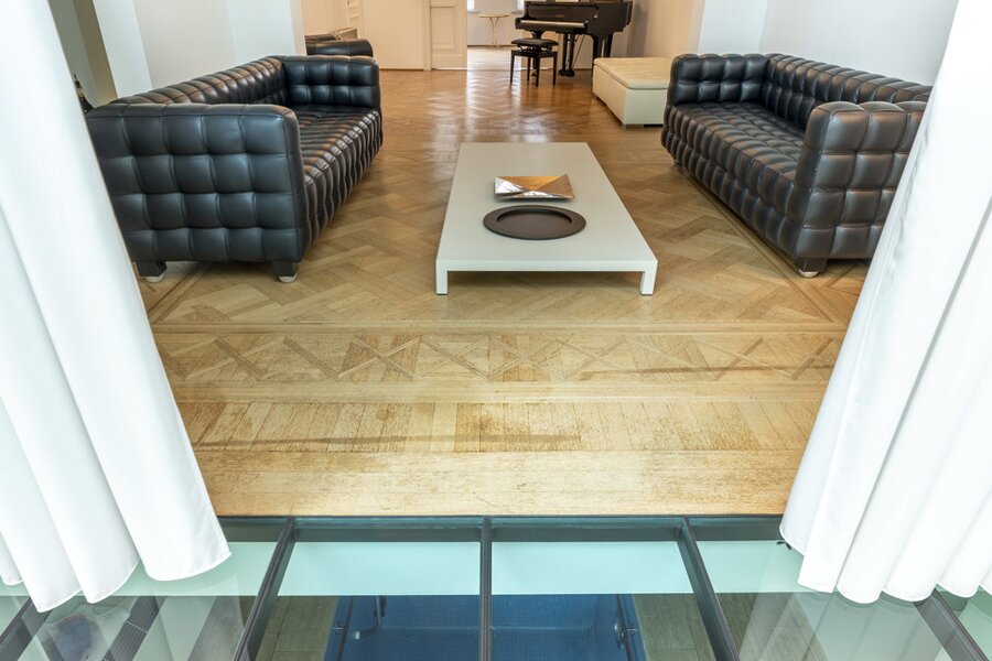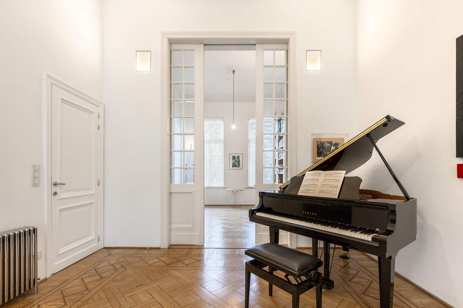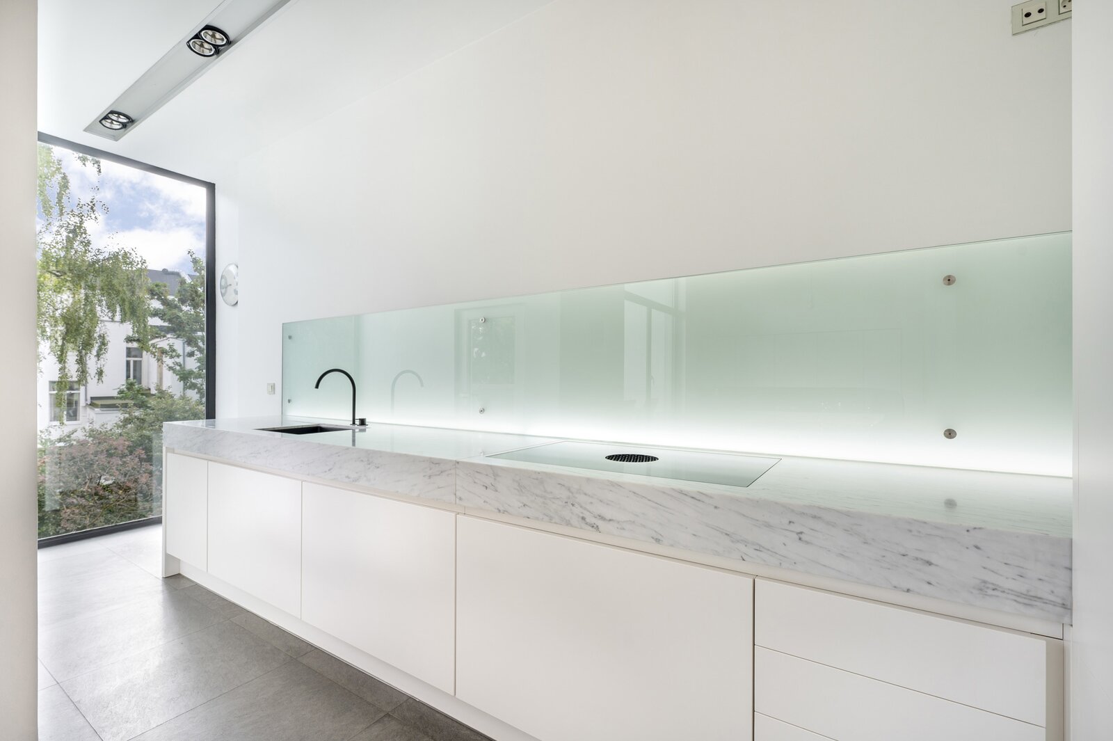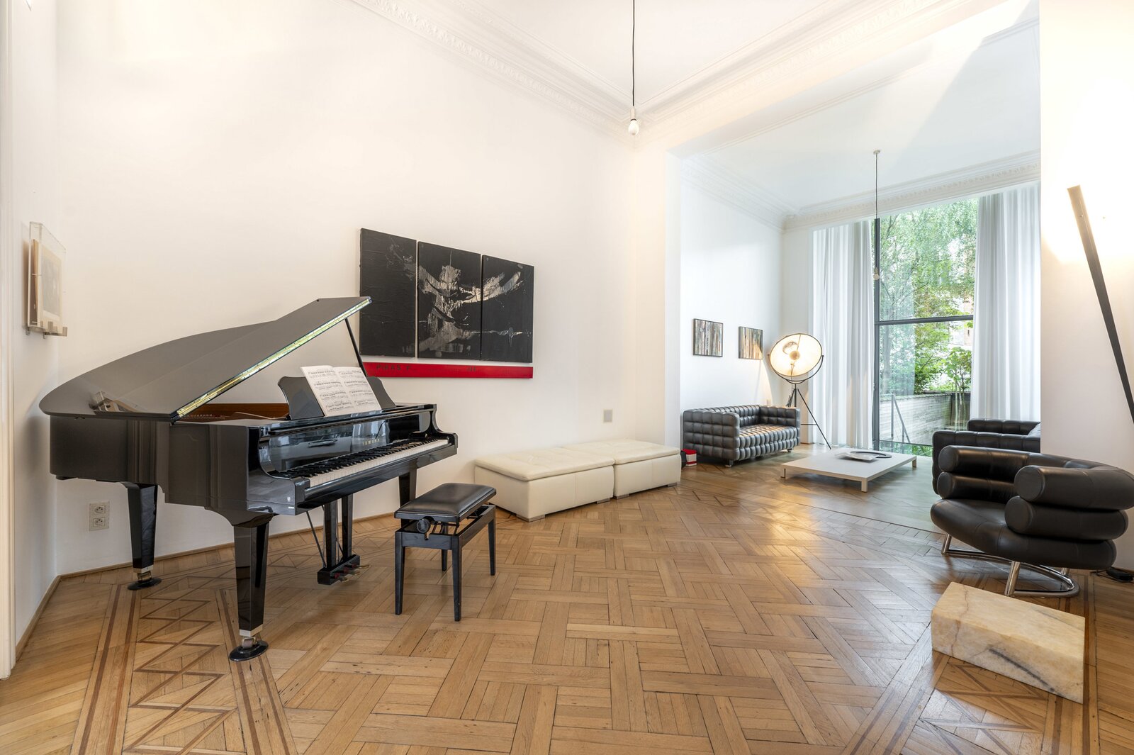 Op het gelijkvloers lopen momenteel 3 open ruimtes in mekaar over, met prachtige parkvloer, hoge plafonds en veel licht en authenticiteit. De glazen achtervel laat de woning overvloeien in de tuin.