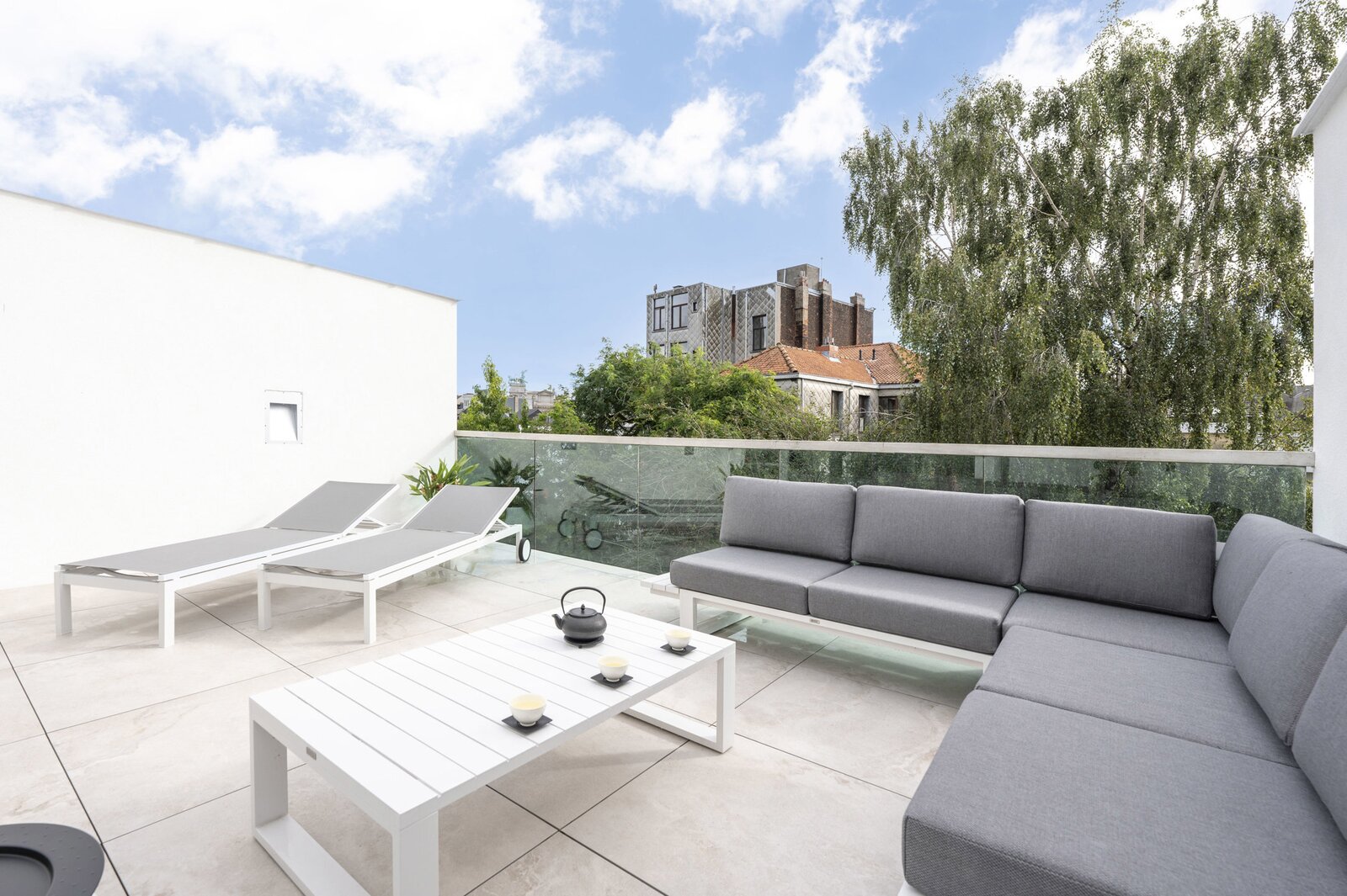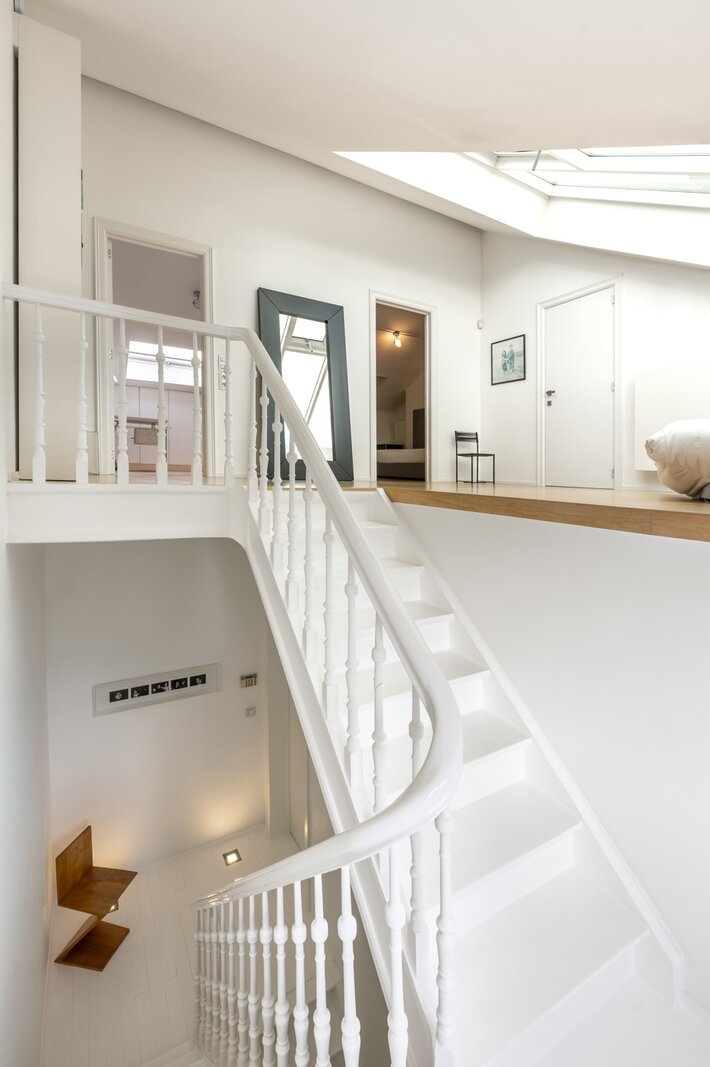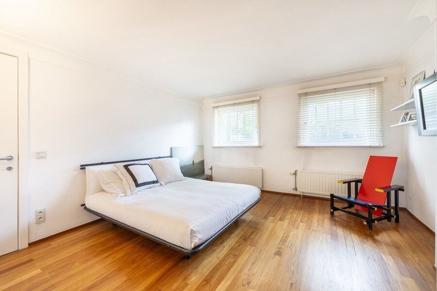 Op de tweede verdieping omvat de masterbedroom met ensuite een ruime badkamer in travertin gerealiseerd en een dressing. Mooi terras.
