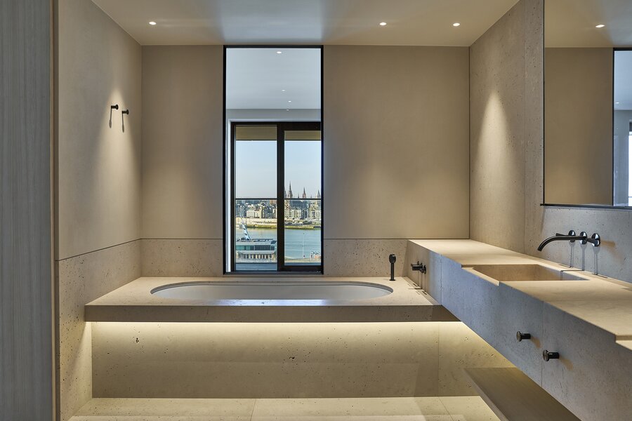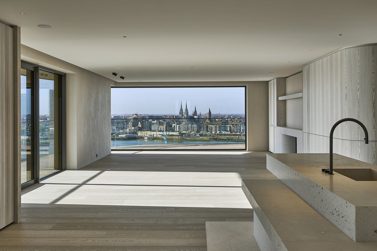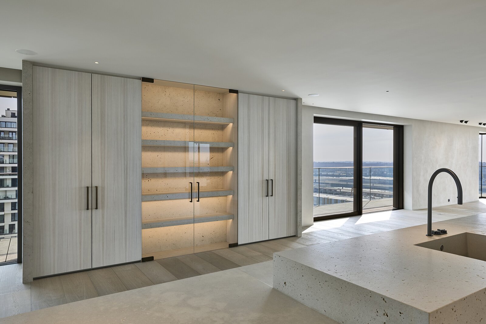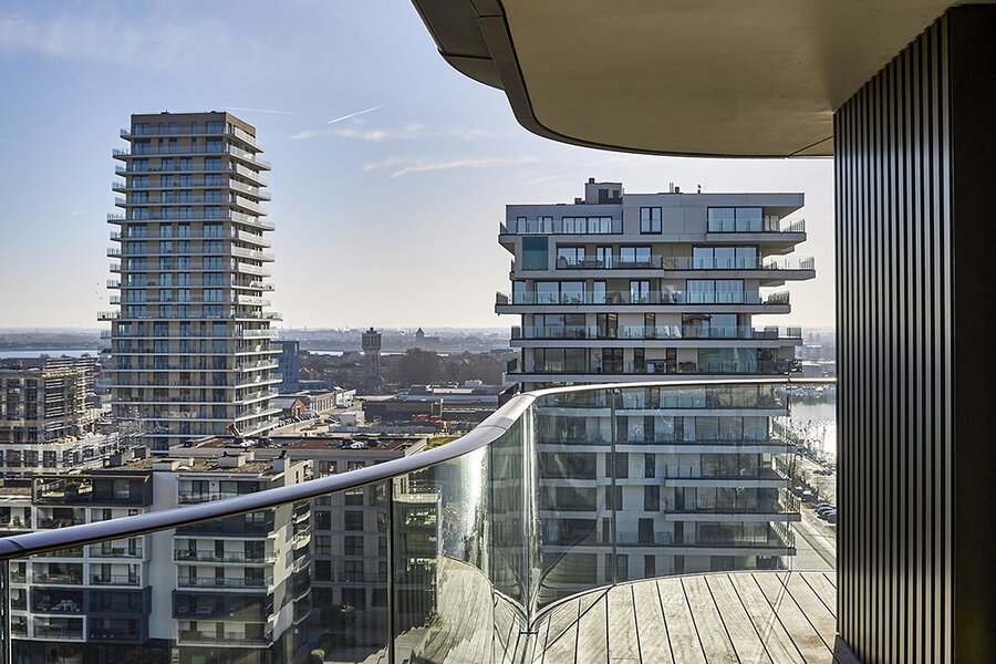 Prachtige penthouse te koop in de iconische ONE BAELSKAAI op Oosteroever. Het appartement werd volledig afgewerkt door Obumex. De vraagprijs omvat de afwerking, inclusief domotica en wasmachine + droogkast, alsook de twee ondergrondse garageboxen (samen 85vkm groot).