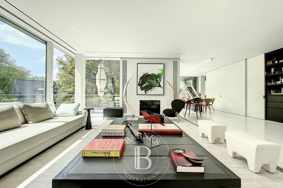 Bijzonder en zeer exclusief Penthouse met grote raampartijen en uitzicht op de bomen. In een klein condominium uit 1999 getekend Marc Corbiau, Barnes Brussels biedt te koop dit lumineus appartement van ongeveer 234m2 woonoppervlak (volgens EPC).