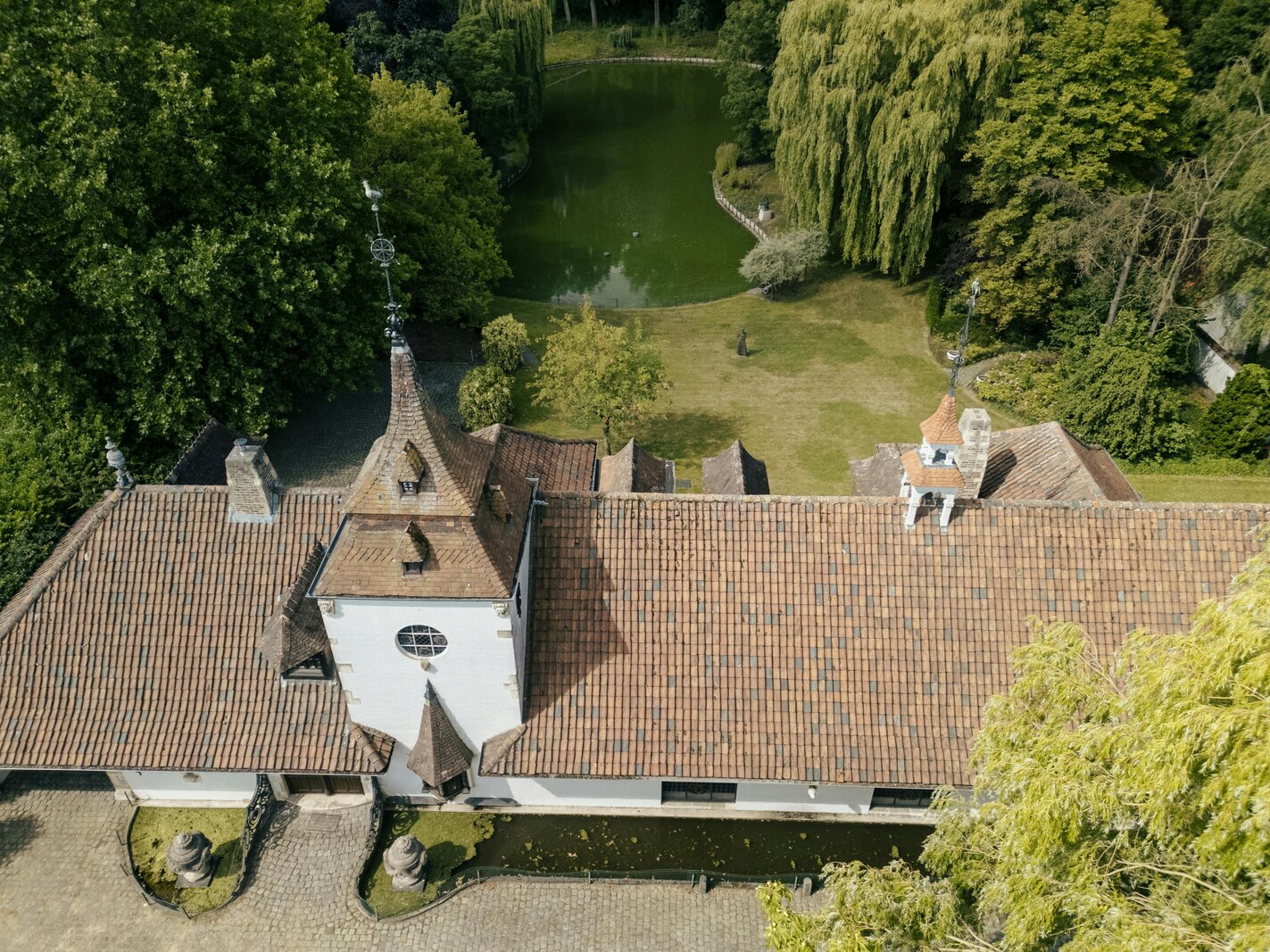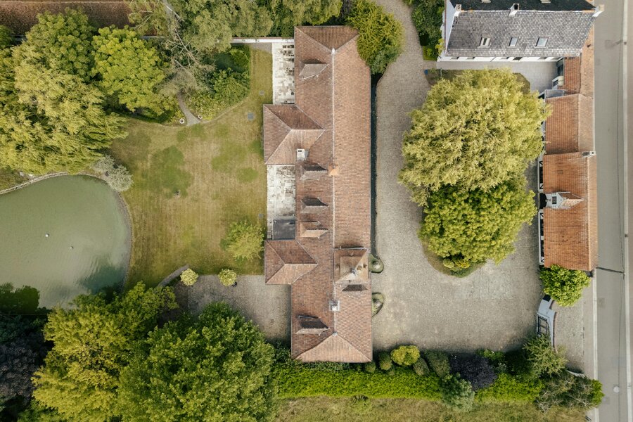Deze exclusieve eigendom op ca. 1ha omvat een statige villa in kasteelhoevestijl (bouwjaar 1976), een afzonderlijke conciërgewoning (ca. 201 m² bewoonbare oppervlakte) en bijgebouwen. De villa beschikt over een royale bewoonbare oppervlakte van 683 m² en straalt een landelijke elegantie uit die onmiddellijk charmeert.
