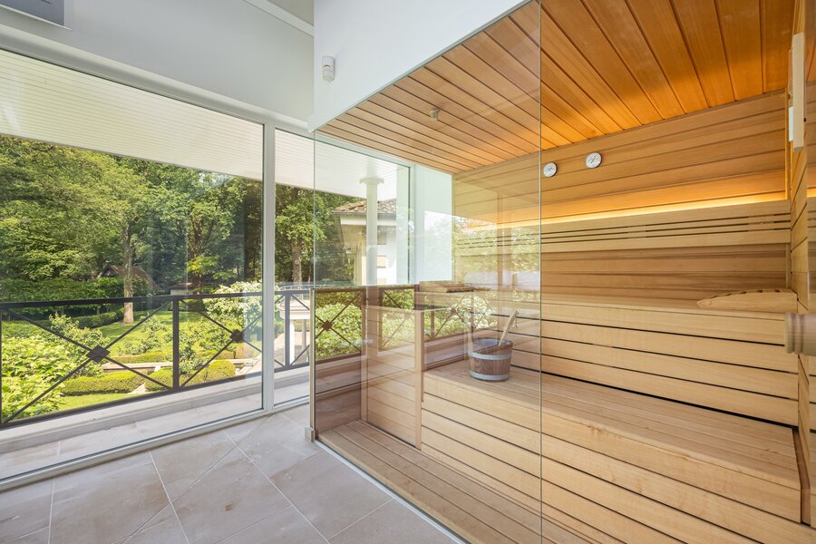 Wellness gedeelte, voorzien van zwembad, sauna en sanitair.