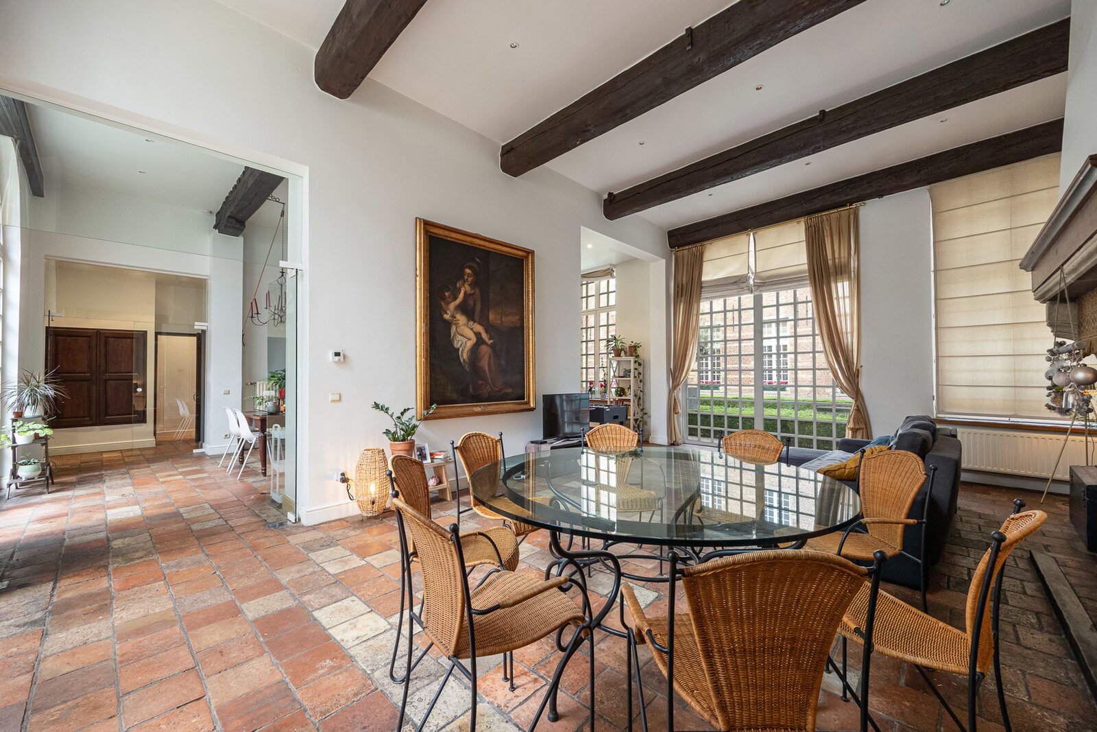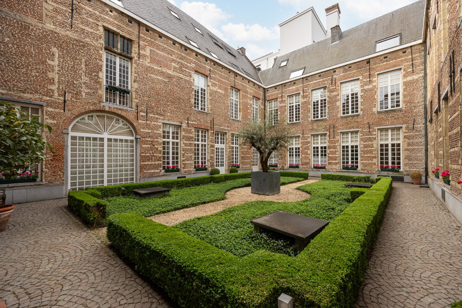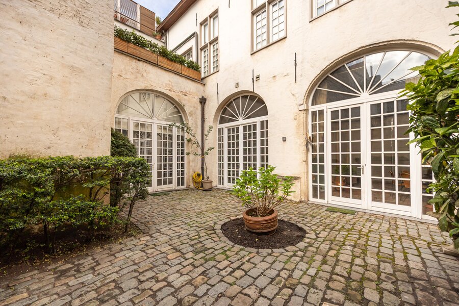 Royaal gerenoveerd appartement in historisch 16de eeuws pand met stadstuin, twee slaapkamers, twee badkamers en autostaanplaats.
