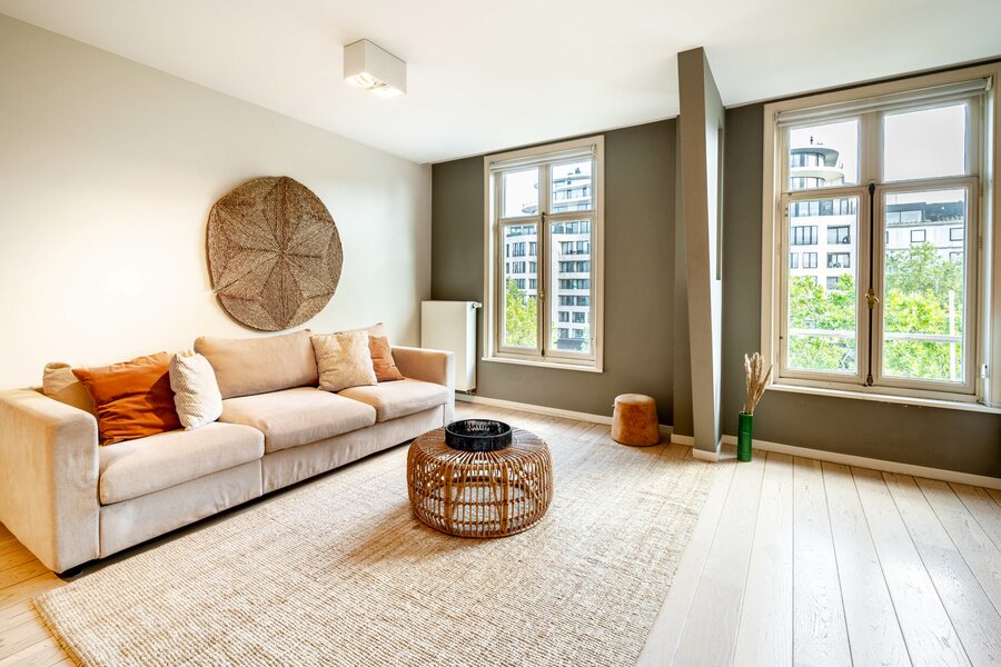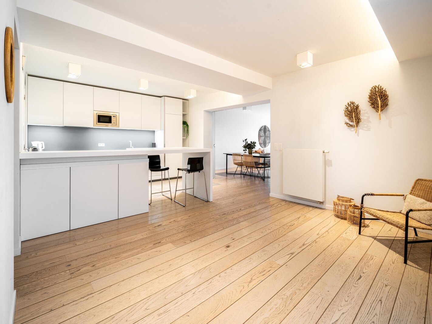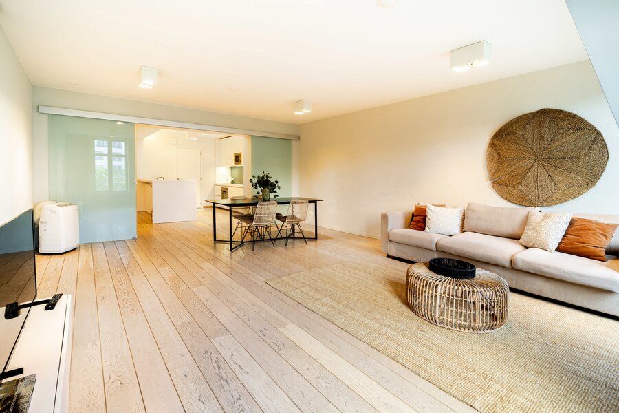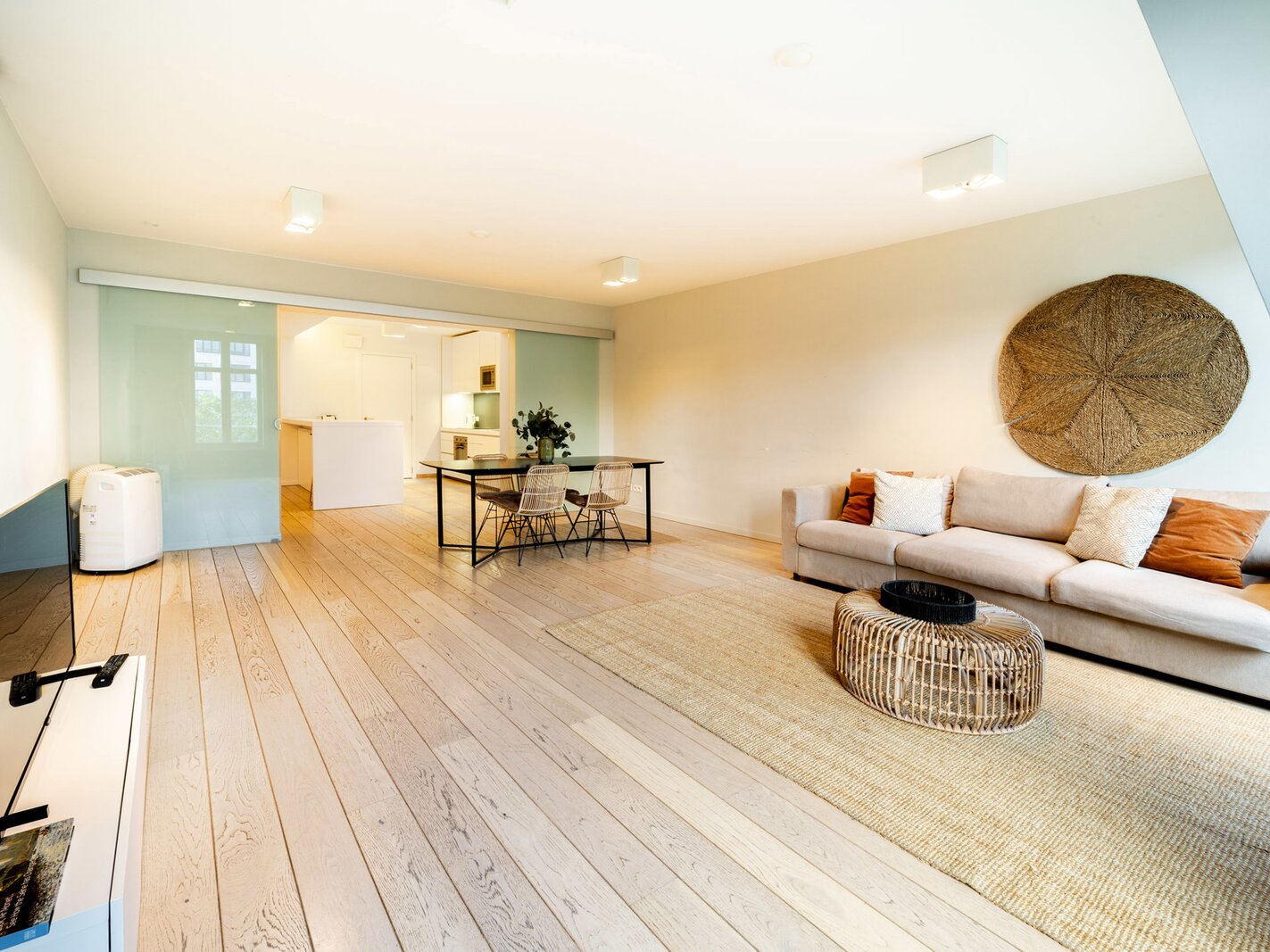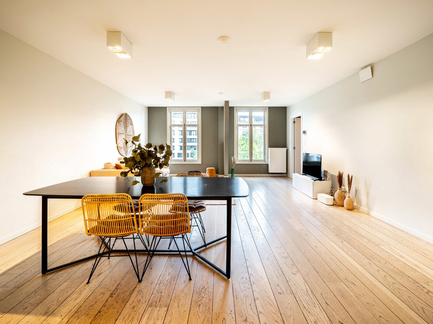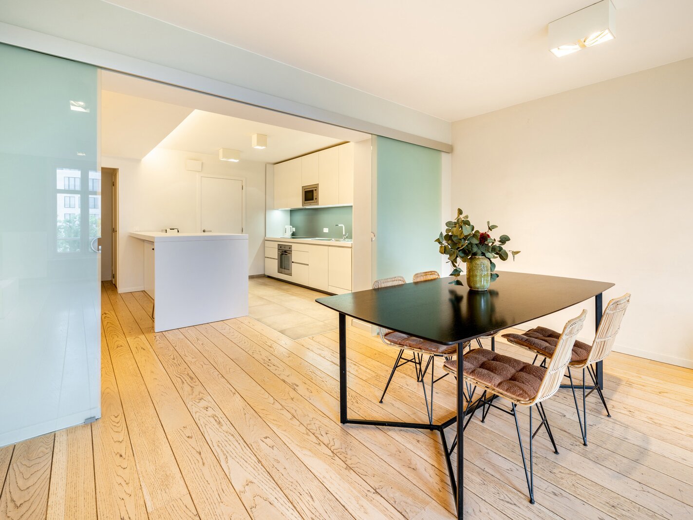 Het appartement gelegen op de derde verdieping van een “Neo-Renaissance” geïnspireerd herenhuis komt uit op een inkomhal met vestiaire en gastentoilet en leidt naar de enorme leefruimte bestaande uit een “Bulthaup” keuken ingericht met een aanrecht/lunchruimte en strekt zich uit tot de woonkamer en eetkamer. Aan de nachtzijde een grote slaapkamer met ingebouwde kasten en een badkamer met inloopdouche, ligbad en apart toilet. Een ingerichte wasruimte maakt het pakket compleet.