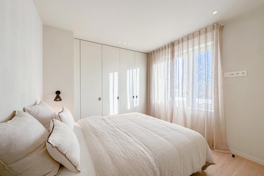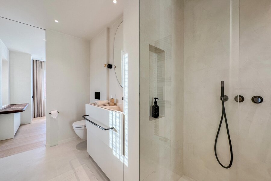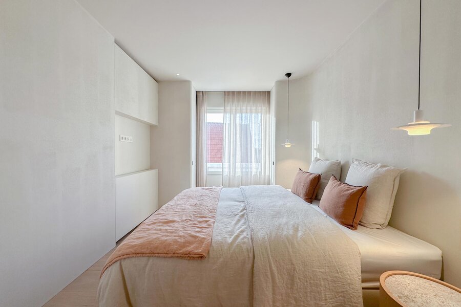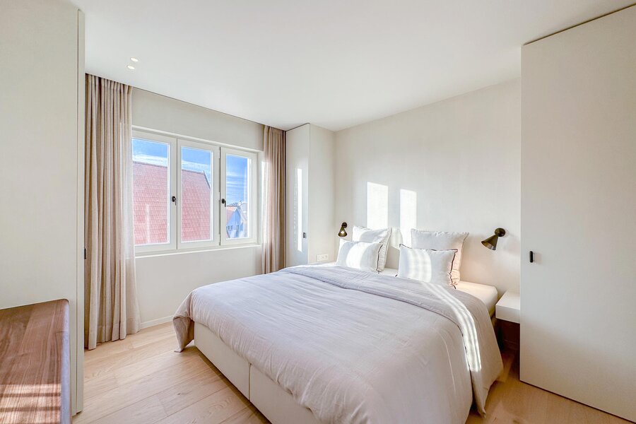 Master bedroom met terras, douchekamer en apart toilet. Een 2e slaapkamer met terras gevolgd door een gedeelde douchekamer met de 3e slaapkamer. De 4e slaapkamer bevindt zich op de zolderverdieping, deze deed vroeger dienst als meidenkamer. Overig beschikt het appartement ook nog over een berging met aansluiting voor een wasmachine.