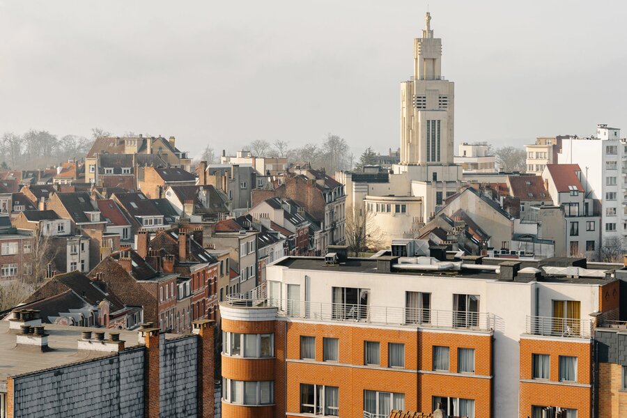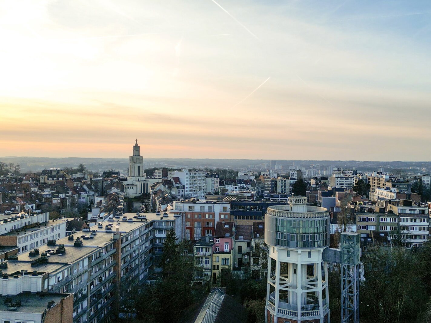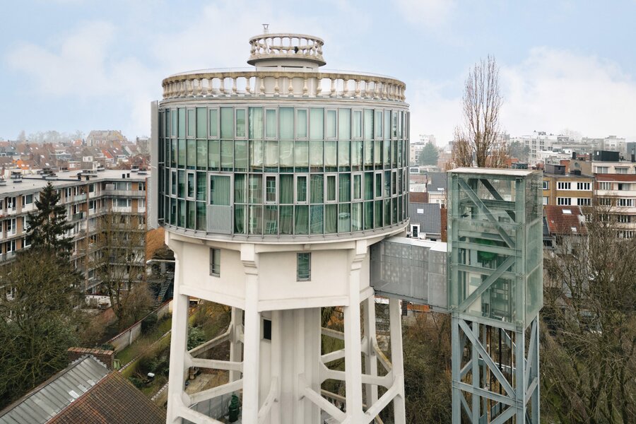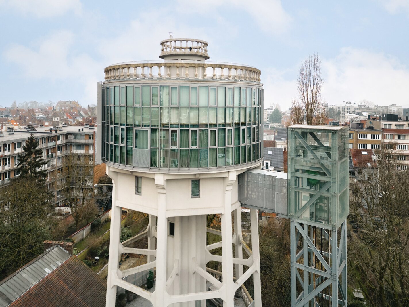 Vlakbij de gewilde Molièrelaan, achter een elegant metaal hek, staat de Marconi-watertoren die in 1904 werd gebouwd. Hij werd tot 1934 geëxploiteerd door de Compagnie Bruxelloise des Eaux en werd in 2007 omgebouwd tot woningen door architectenbureau Paczowski & Fritsch in samenwerking met CM Architectes Associés. Dit 35 meter boven de grond gelegen triplex combineert technisch talent met een kundige mix van extravagantie en heeft een totale oppervlakte van ± 274 m² (volgens EPB), aangevuld met een terras dat een spectaculair uitzicht over Brussel en omgeving biedt.