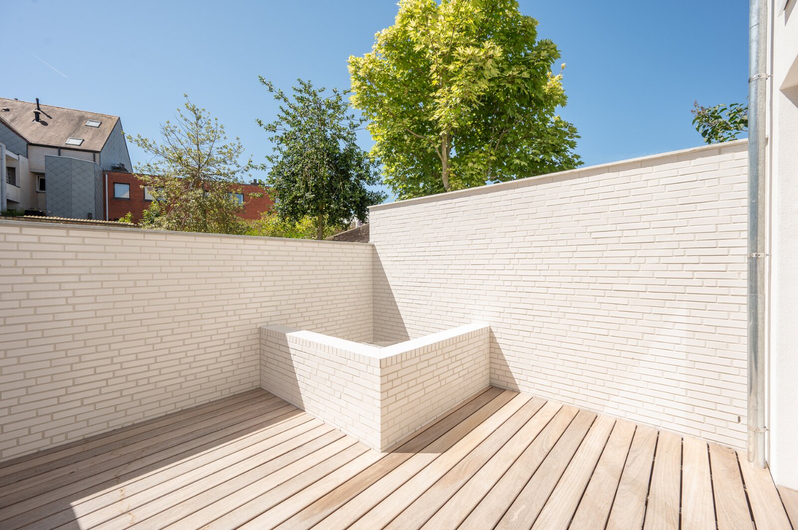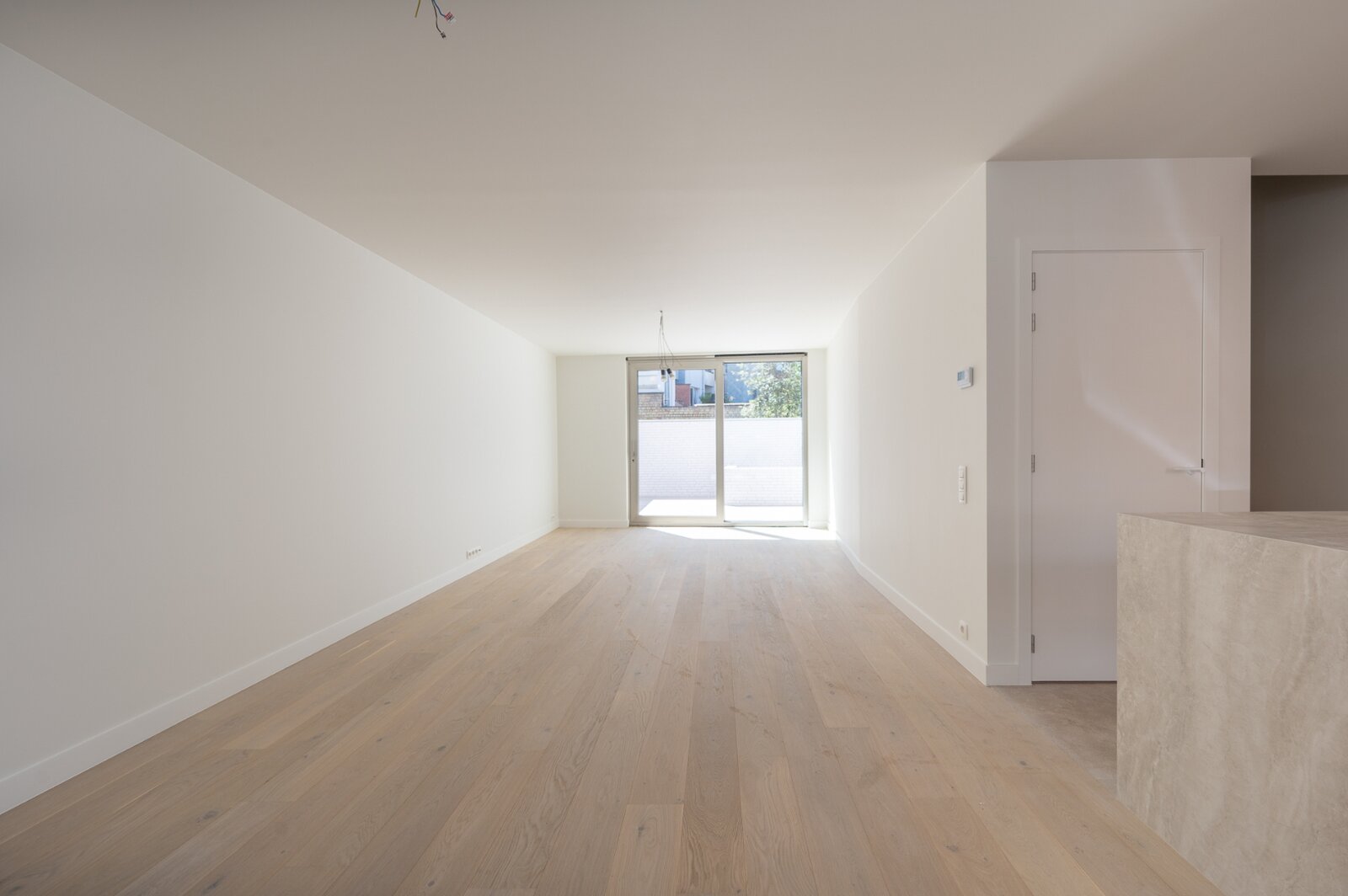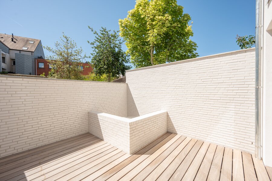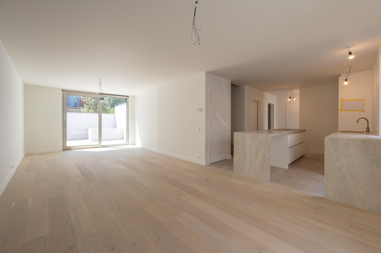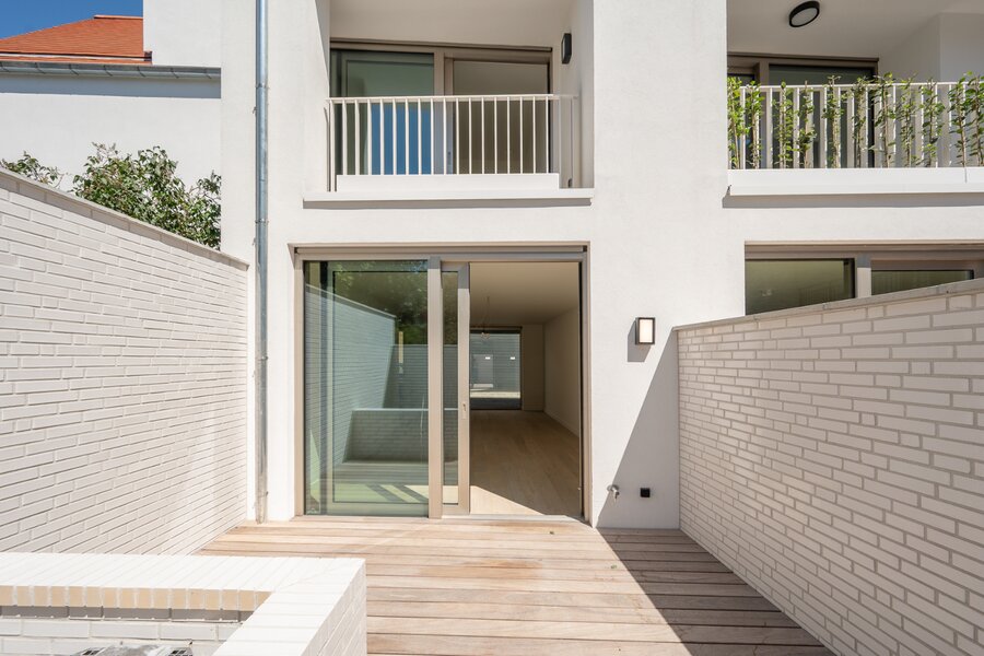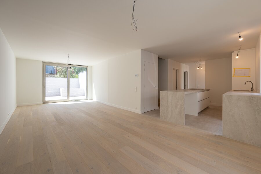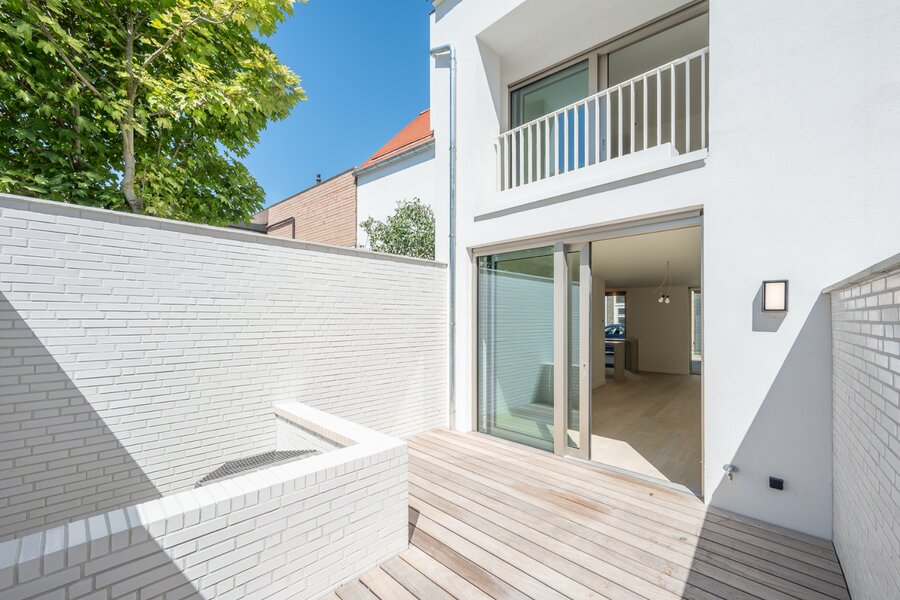 Inkomhal met vestiaire en gastentoilet. Open keuken met kookeiland. Lichtrijke leefruimte met zit- en eethoek. Aangenaam buitenterras dewelke weinig onderhoud vraagt. Praktische berging en bijkomende fietsenberging.