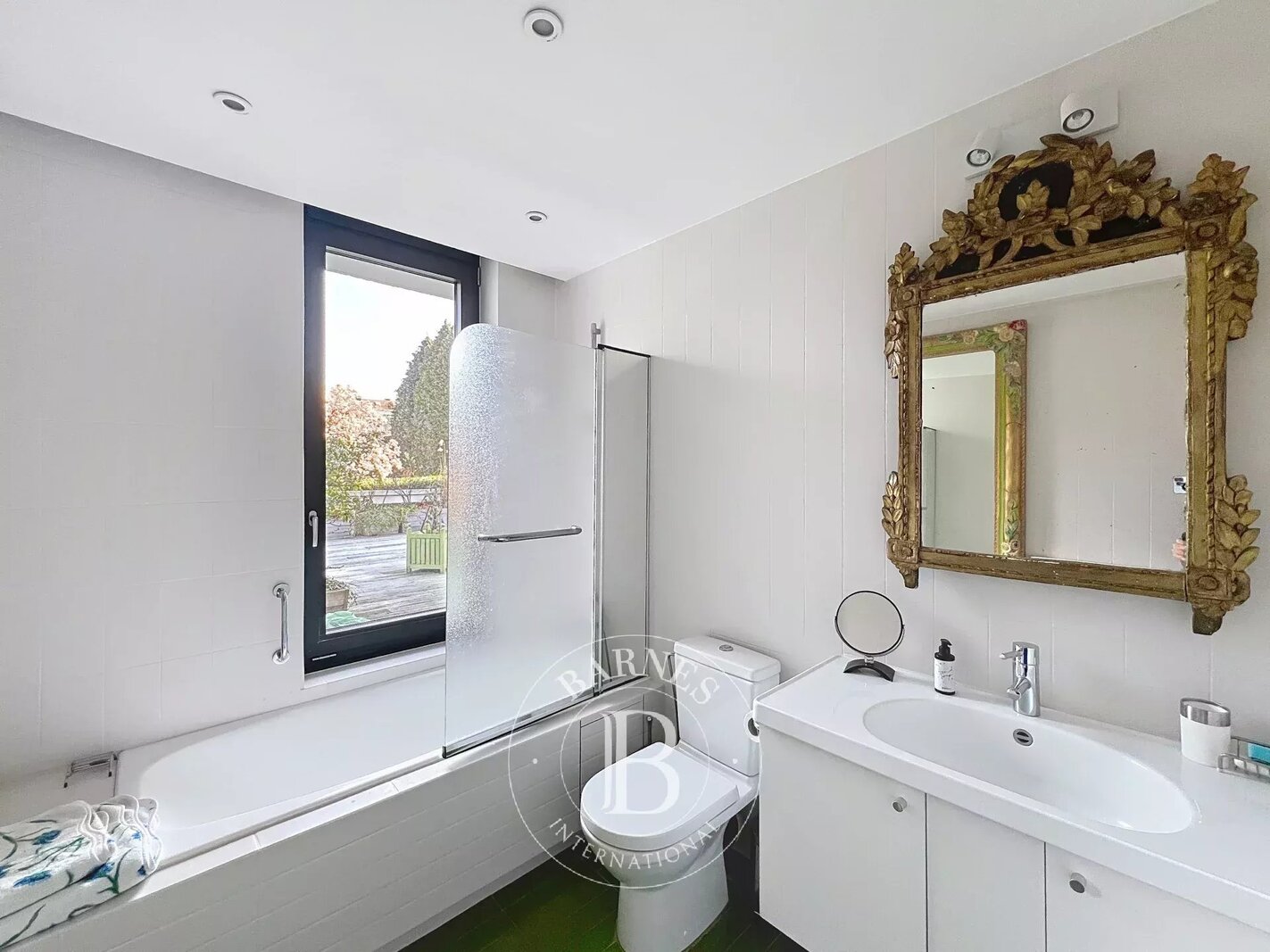 Op de bovenverdieping een ruime nachthal met een studieruimte, twee slaapkamers met toegang tot een groot terras van ongeveer 70m2, en een badkamer.