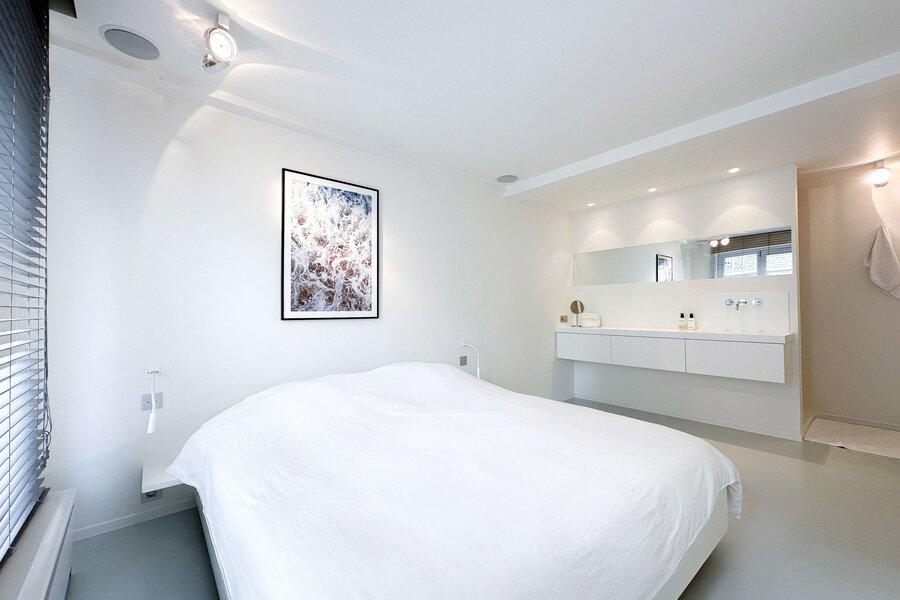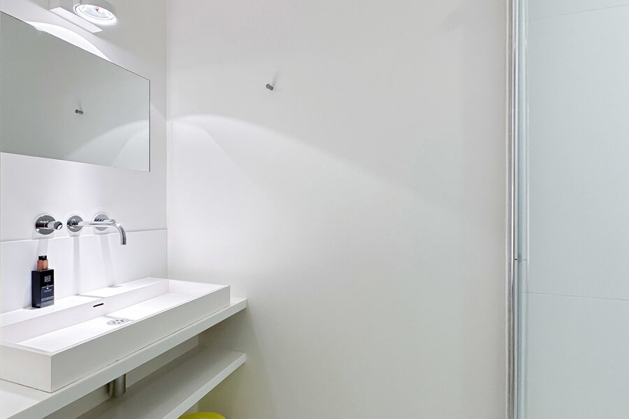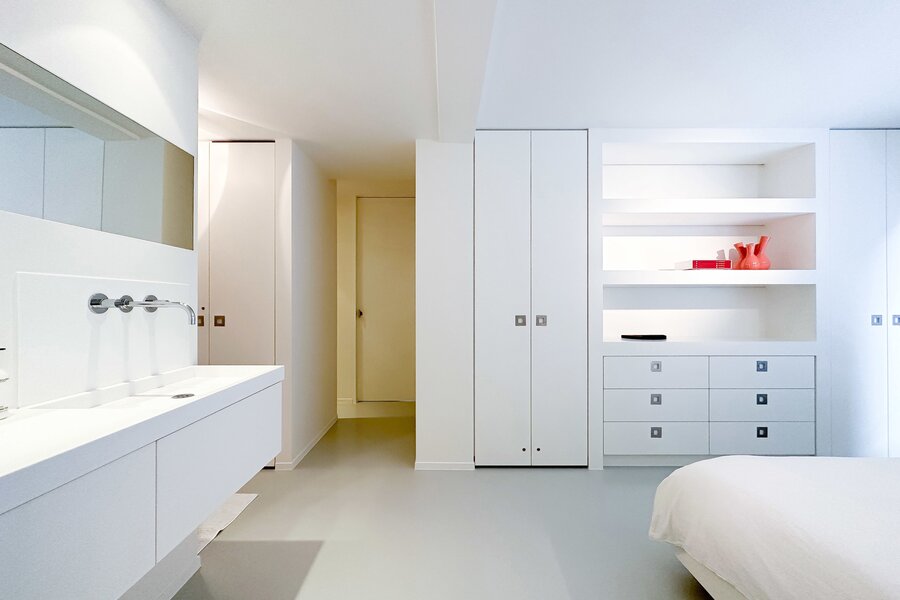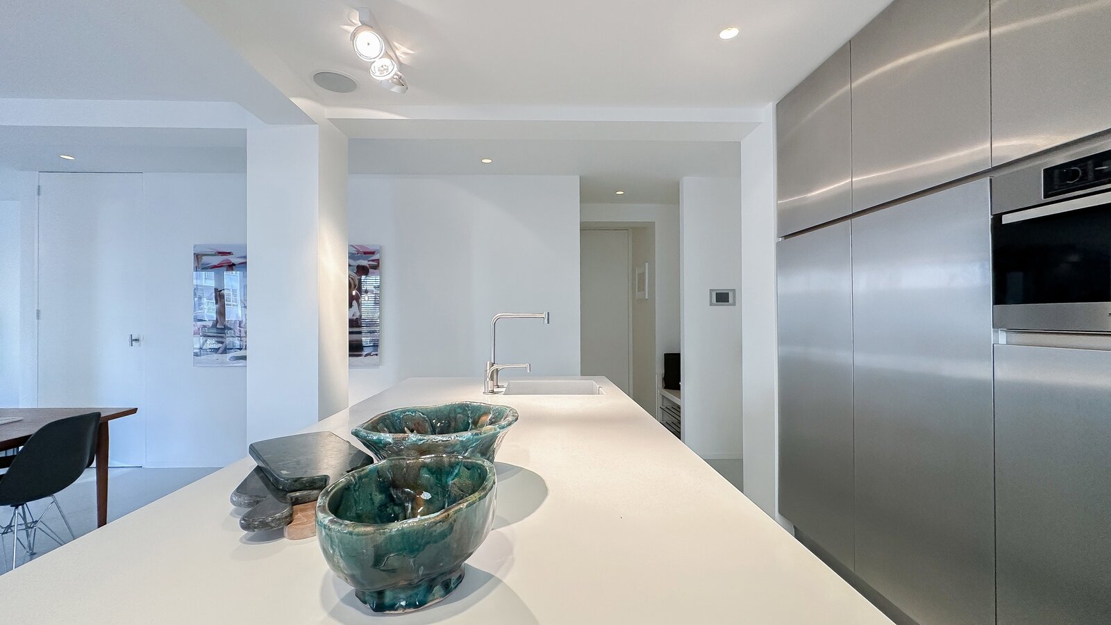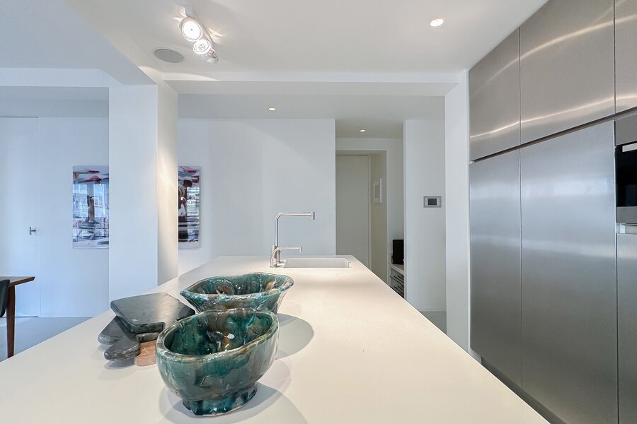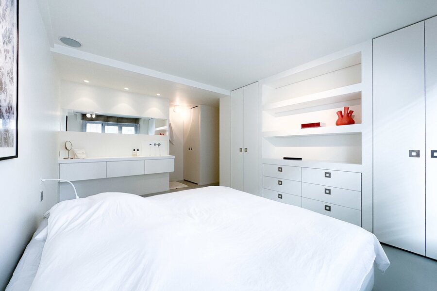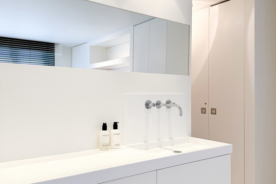 De vloer is zorgvuldig vervaardigd als eerbetoon aan verfijning, terwijl de deurkrukken van Piet Boon, het keukenblad en de wastafel in de badkamer van CORIAN, Clou wastafels, CJC schakelaars, ingebouwde luidsprekers, een SONOS installatie, en huishoudtoestellen van het gerenommeerde merk MIELE (oven en stoomoven) getuigen van compromisloze kwaliteit.