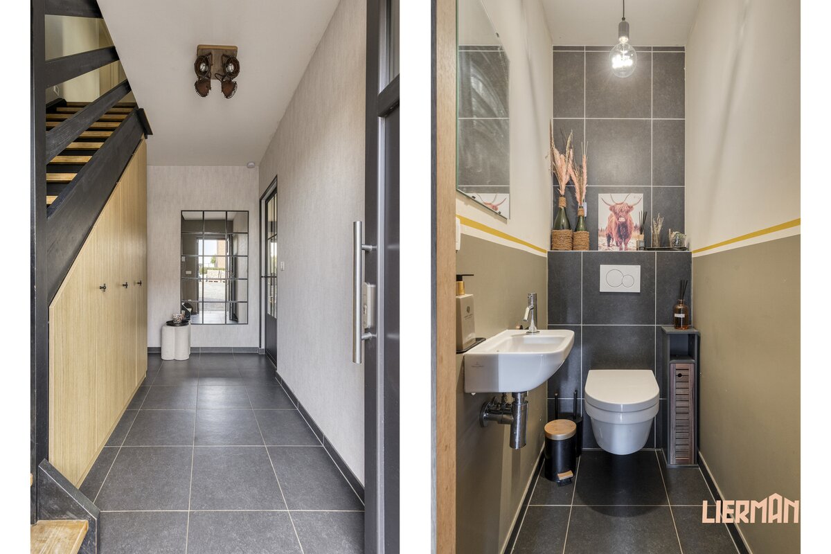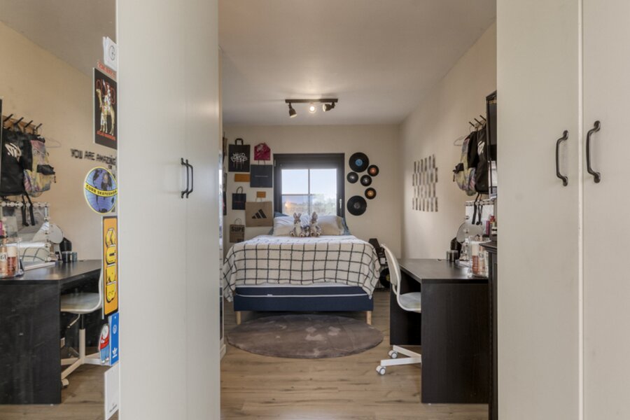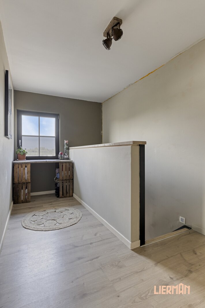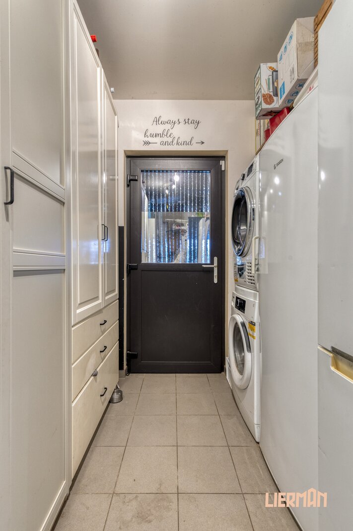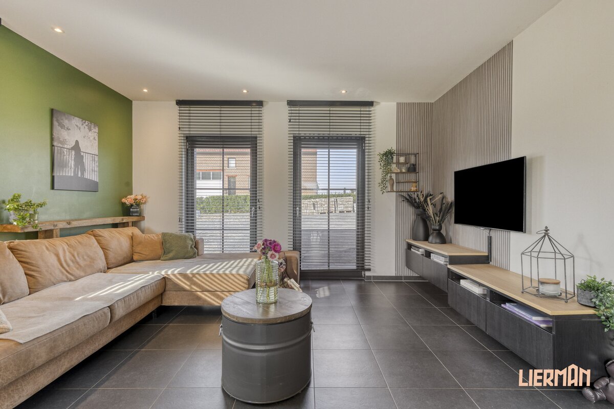 Binnenin wacht je een lichtrijke leefruimte met een volledig uitgeruste keuken met hoogwaardige toestellen en een aansluitende berging/wasplaats. Verder op het gelijkvloers: een inkom-/traphal, een apart toilet en een bureauruimte aan de voorzijde. Er is vloerverwarming aanwezig, aangedreven door een warmtepomp, in combinatie met 16 zonnepanelen.
