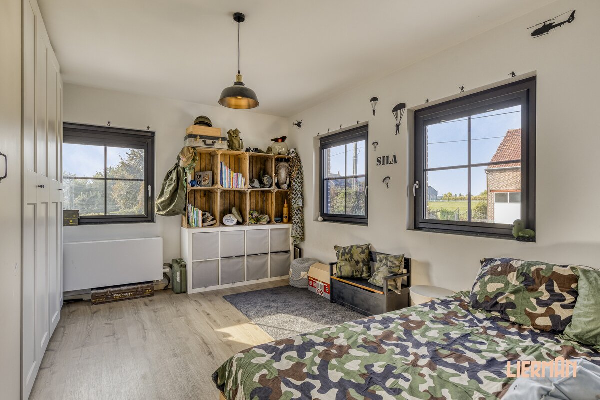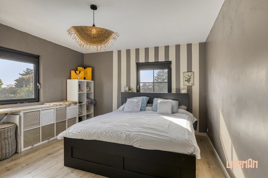 Deze woning onderscheidt zich door haar energiezuinig karakter, met onder meer een regenwaterrecuperatiesysteem (10.000 liter), een alarmsysteem, automatische screens aan de achterzijde, en natuurlijk de zuidgerichte tuin met verwarmd zwembad. De aparte bureauruimte biedt bovendien de ideale oplossing voor wie van thuis uit werkt of een hobbyruimte wenst. Alles samen maakt dit een ideale gezinswoning op een rustige, groene locatie.