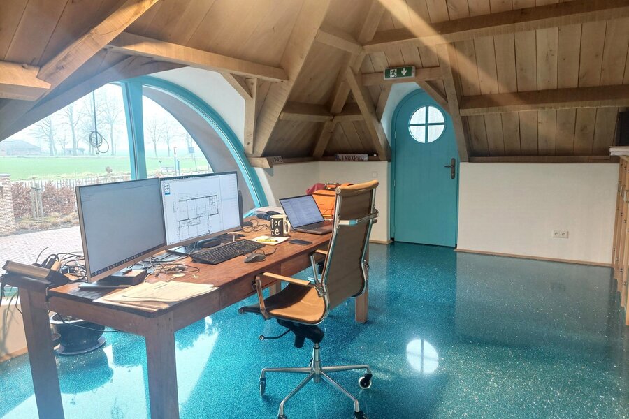 - Nieuwe aanbouw in gebruik als kantoor — ook ideaal voor B&B (vergunning werd eerder afgeleverd) of praktijkruimte
