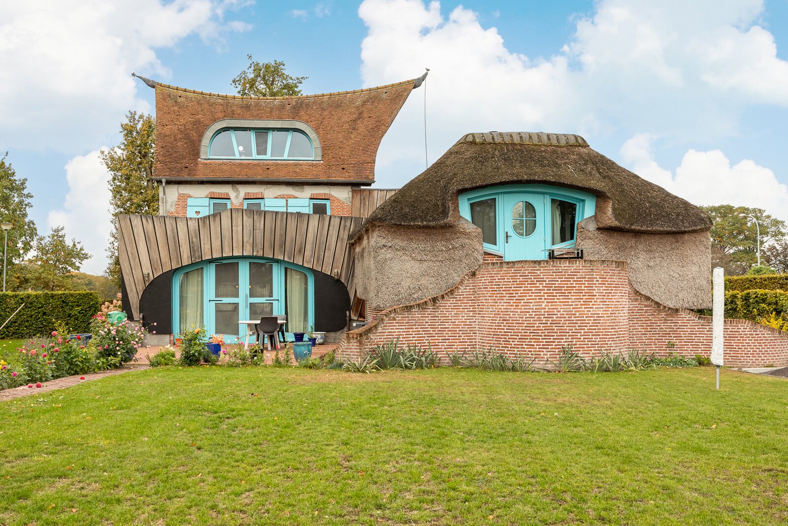 Omschrijving: Stap binnen in deze woning waar sierlijkheid en functionaliteit samenkomen! Bij de bouw lieten de eigenaars zich inspireren door de romantiek van de Efteling en deden ze beroep op de getalenteerde vormgever Anton van Alphen om tot dit unieke eindresultaat te komen. De samenwerking resulteerde in een bouwkundig meesterwerk met speelse vormen, warme materialen en bijzondere details zoals een gewelfd dak, cirkelvormige ramen en charmante luiken. De woning werd volledig gerenoveerd en uitgebreid met een nieuwe aanbouw, die momenteel ingericht is als kantoorruimte met aparte ingang en een derde badkamer (tijdelijk verhuurd tot april 2026).