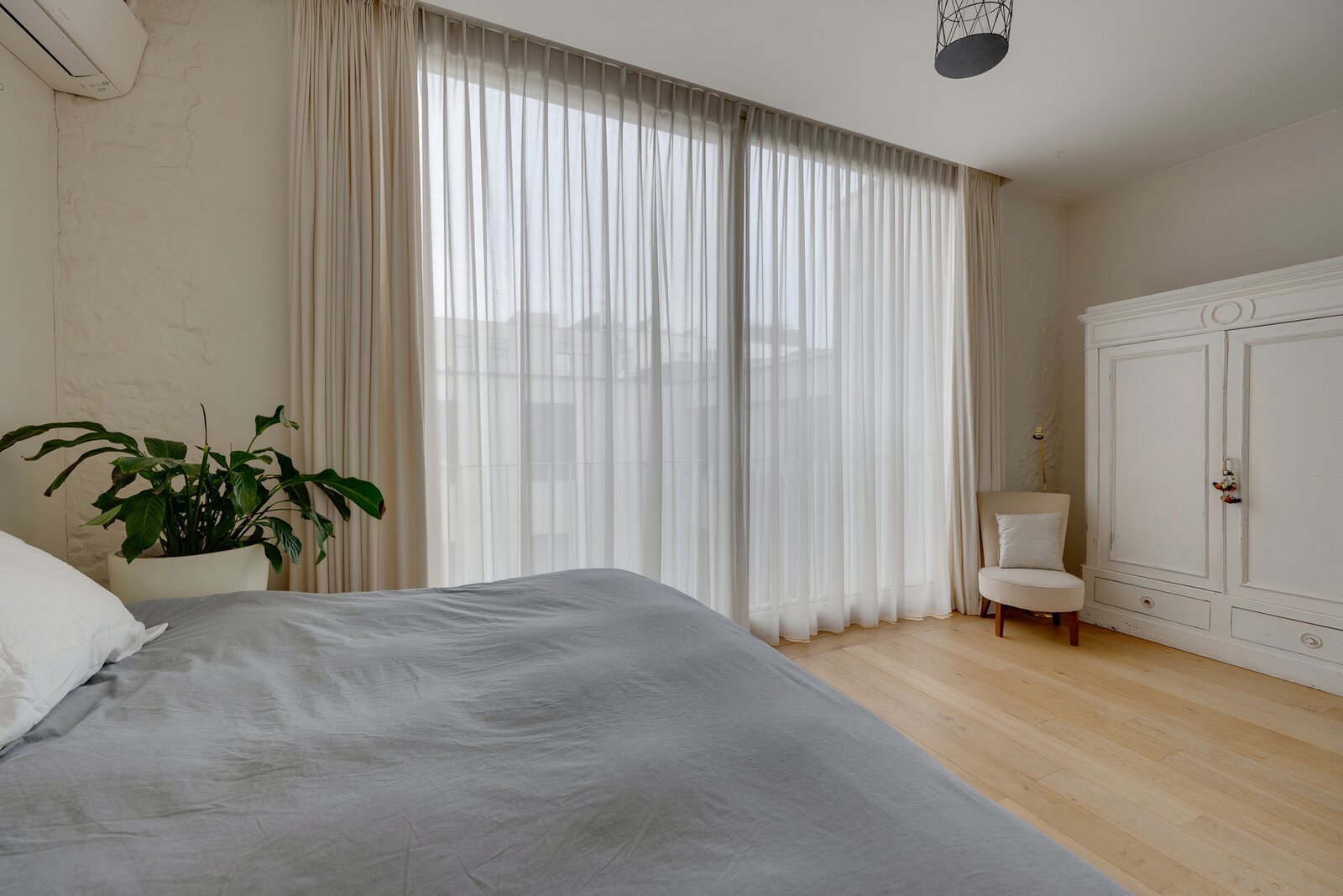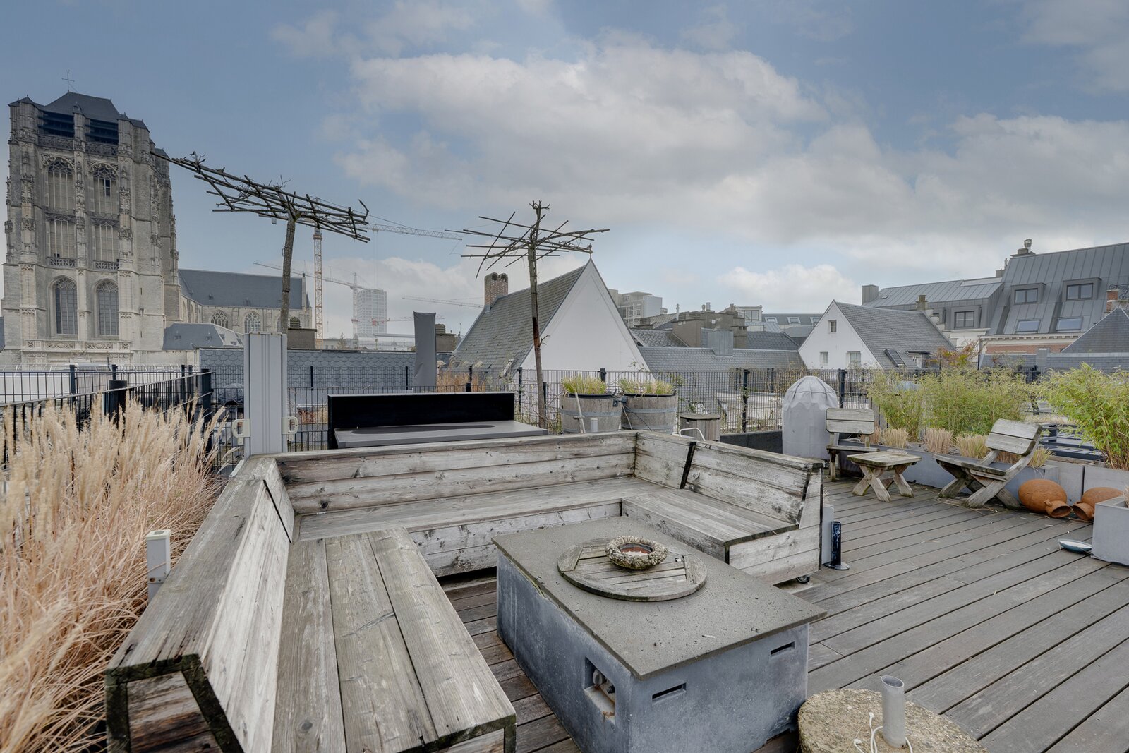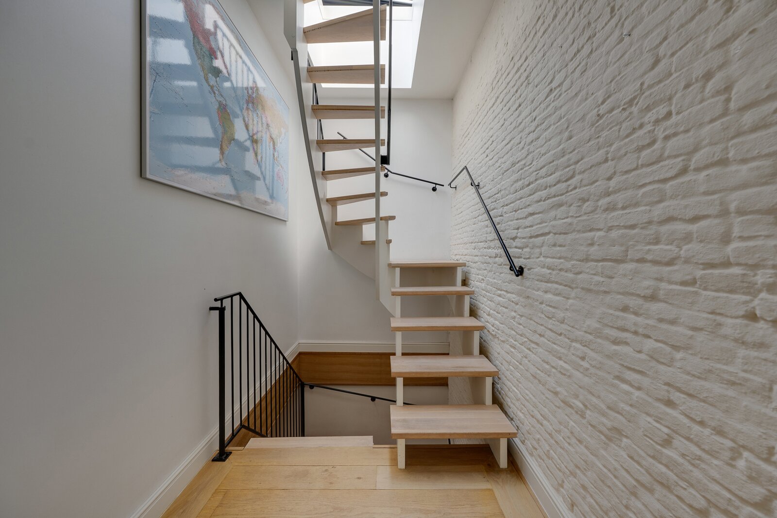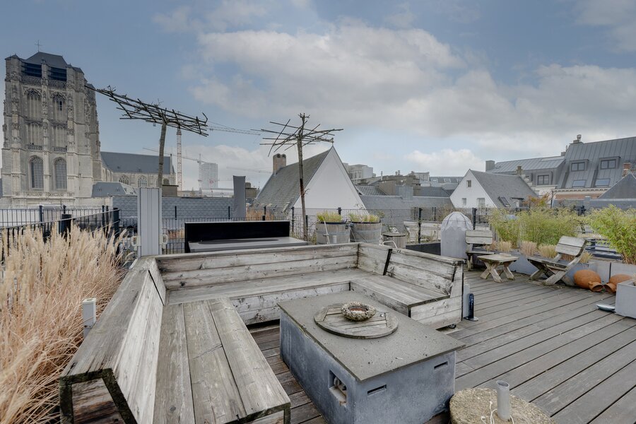 Bovenaan wacht het absolute hoogtepunt: een riant dakterras van 38 m², waar je de hele dag door kan genieten van zon en een prachtig uitzicht over de stad. De woning is afgewerkt met kwalitatieve materialen zoals eiken parket, natuursteen en marmer, en beschikt bovendien over airconditioning, moderne technieken en een geautomatiseerd dakluik.