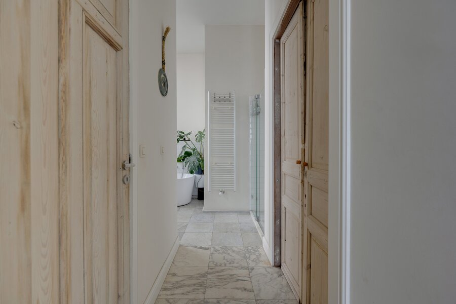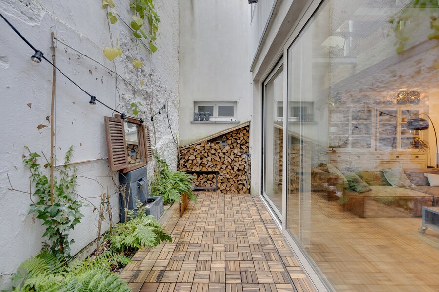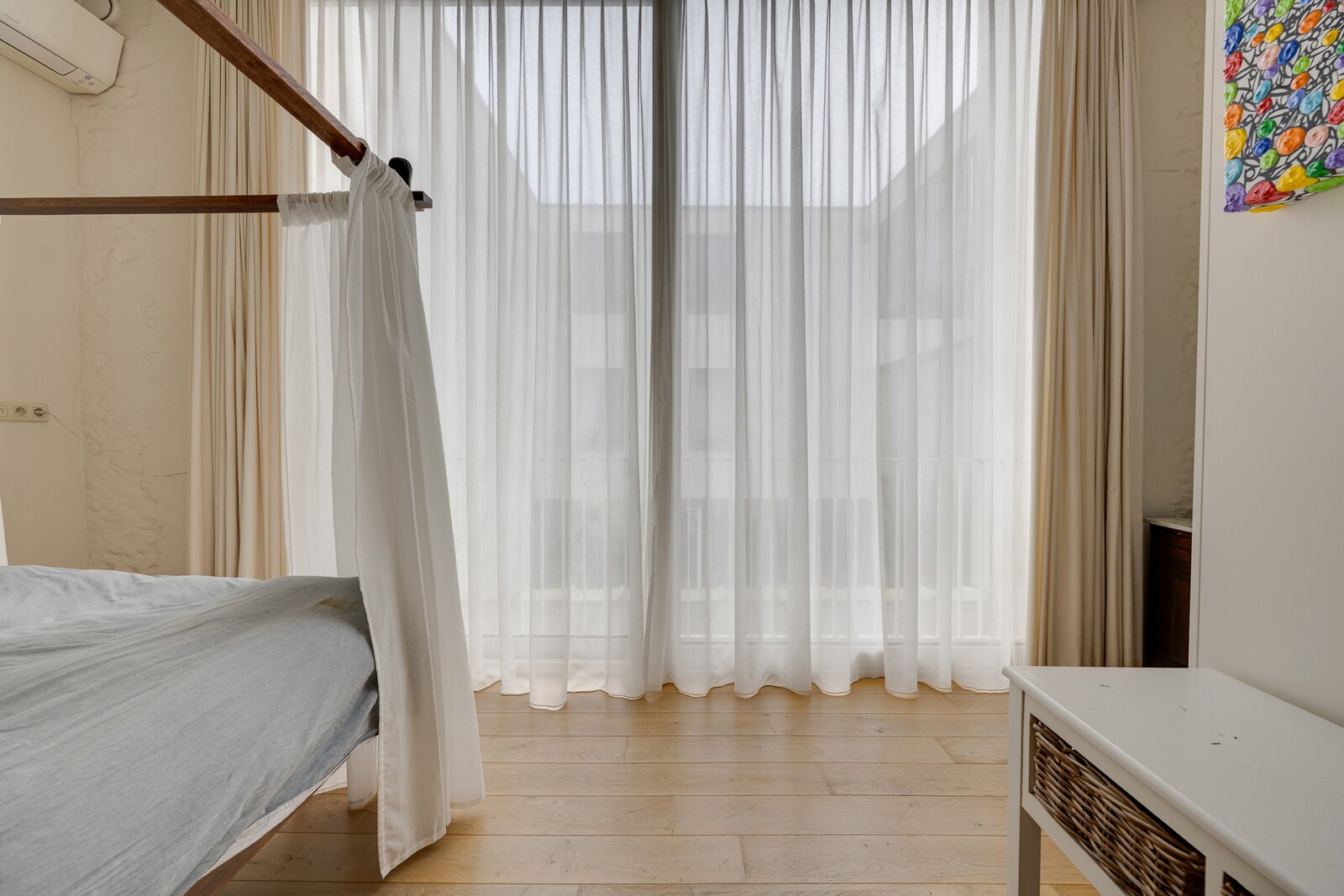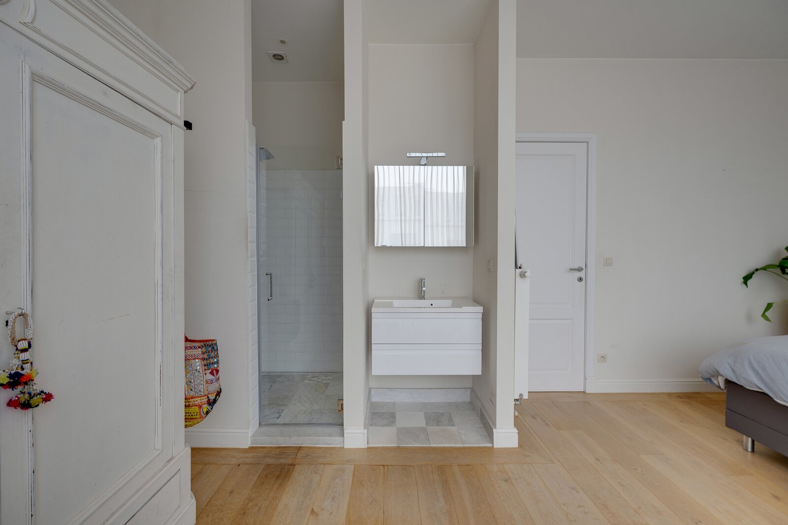 Bovenaan wacht het absolute hoogtepunt: een riant dakterras van 38 m², waar je de hele dag door kan genieten van zon en een prachtig uitzicht over de stad. De woning is afgewerkt met kwalitatieve materialen zoals eiken parket, natuursteen en marmer, en beschikt bovendien over airconditioning, moderne technieken en een geautomatiseerd dakluik.