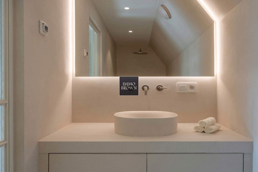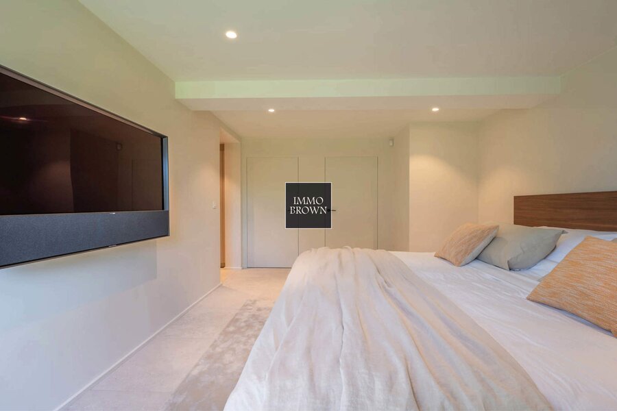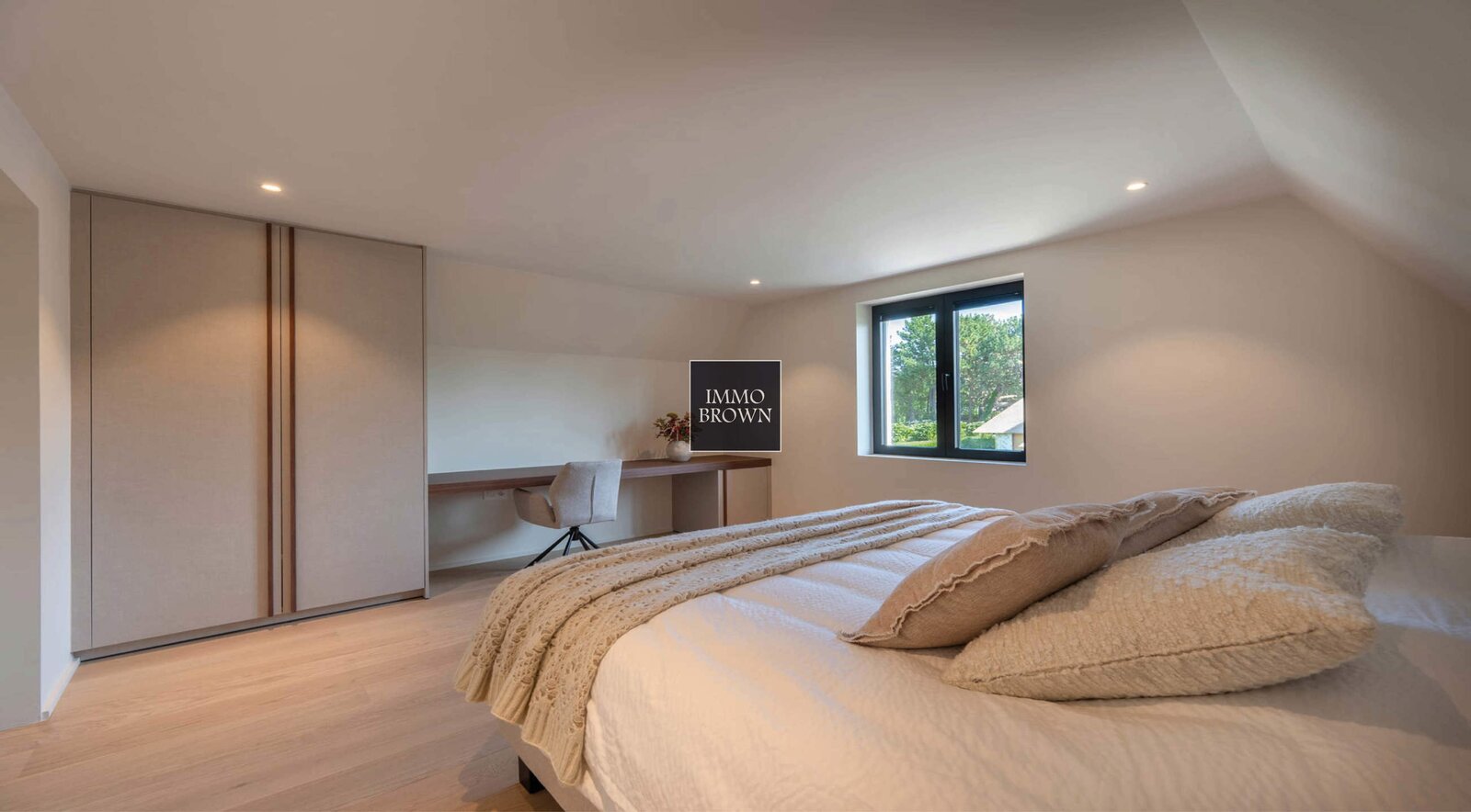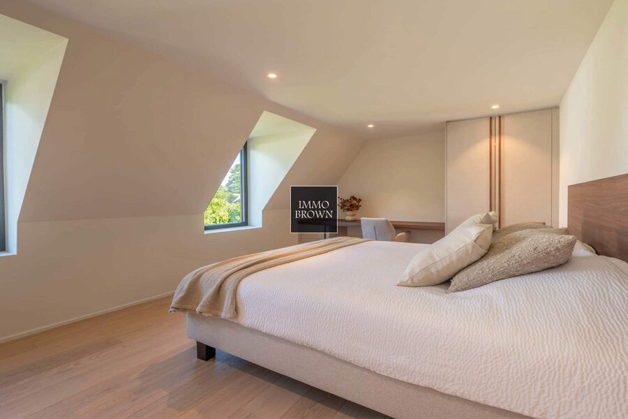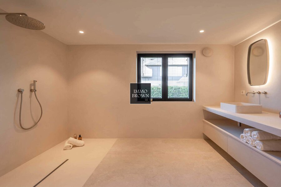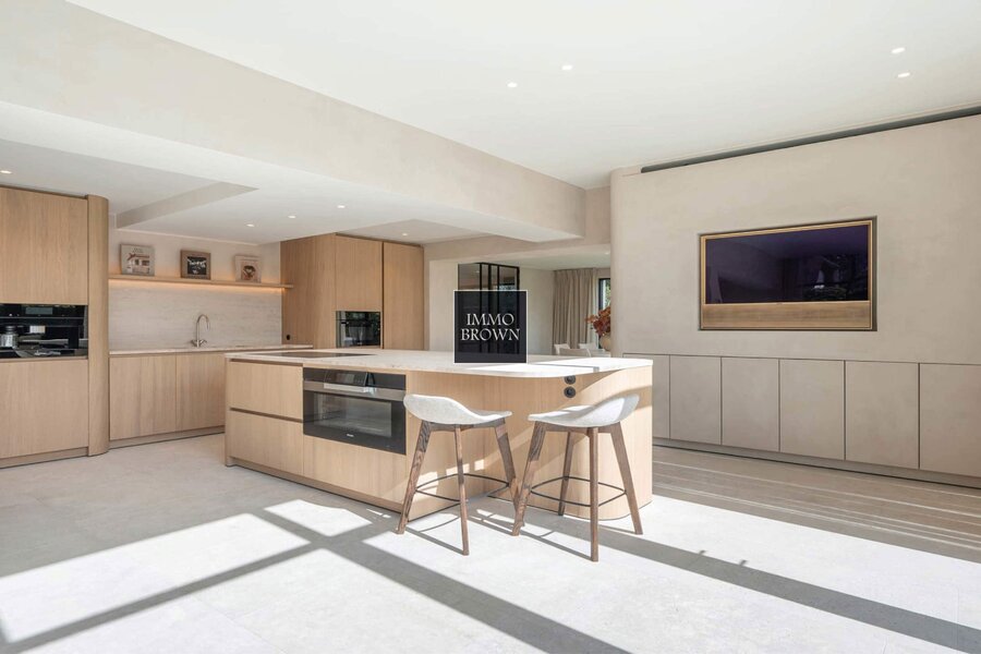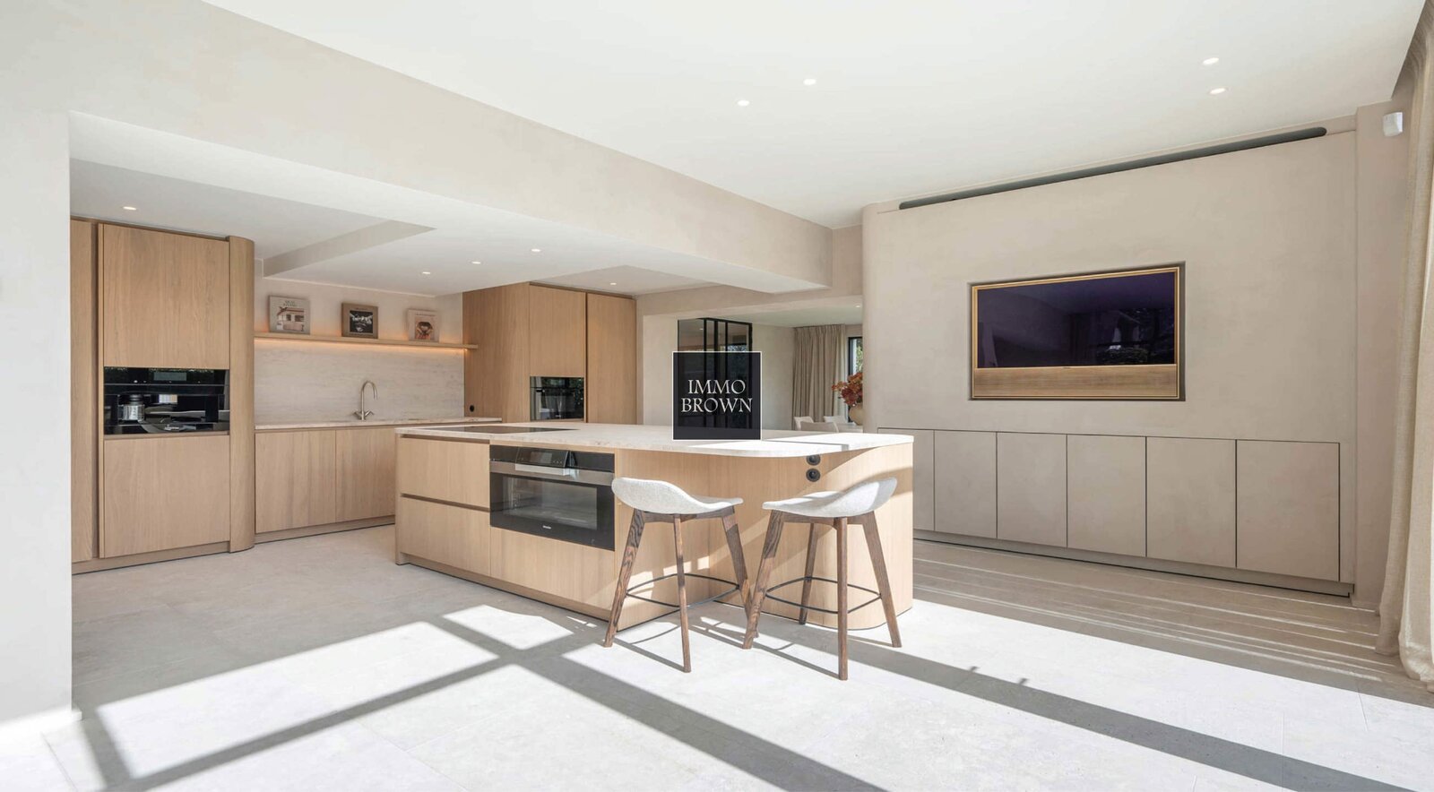 Binnen valt meteen de hoogwaardige afwerking op: travertijn natuursteen, vloerverwarming en airconditioning beneden, en boven afzonderlijke circuits voor een optimaal binnenklimaat. De keuken is volledig uitgerust met Miele-apparatuur en beschikt over een zeer ruime koelkast en diepvries. Dankzij de uitbreiding met een orangerie geniet u van overvloedig daglicht en een directe verbinding met de zuidgerichte tuin.