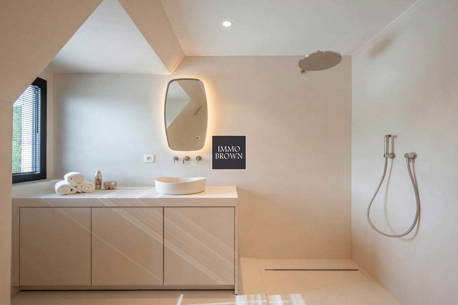 De villa is bovendien duurzaam ingericht met zonnepanelen en biedt uitbreidingsmogelijkheden dankzij de vergunning voor een zwembad van 10 x 4 meter. Een inpandige garage zorgt voor extra comfort en veiligheid. Boven bevindt zich een ruime zolder die zich uitstrekt over de hele woning en eenvoudig kan worden ingericht als hobbyruimte, fitness of kantoor. Het kraanwerk van Grohe onderstreept de aandacht voor kwaliteit tot in de kleinste details.