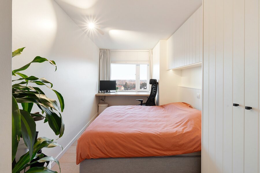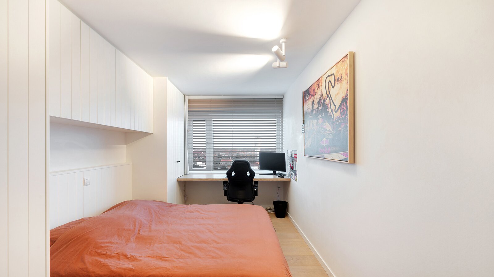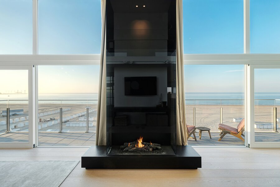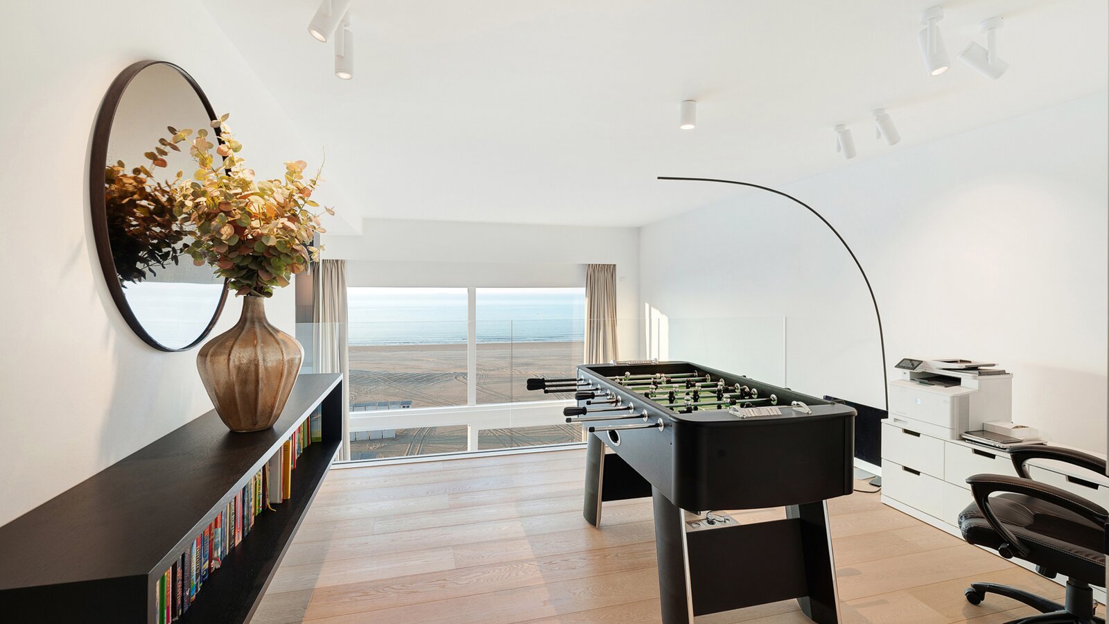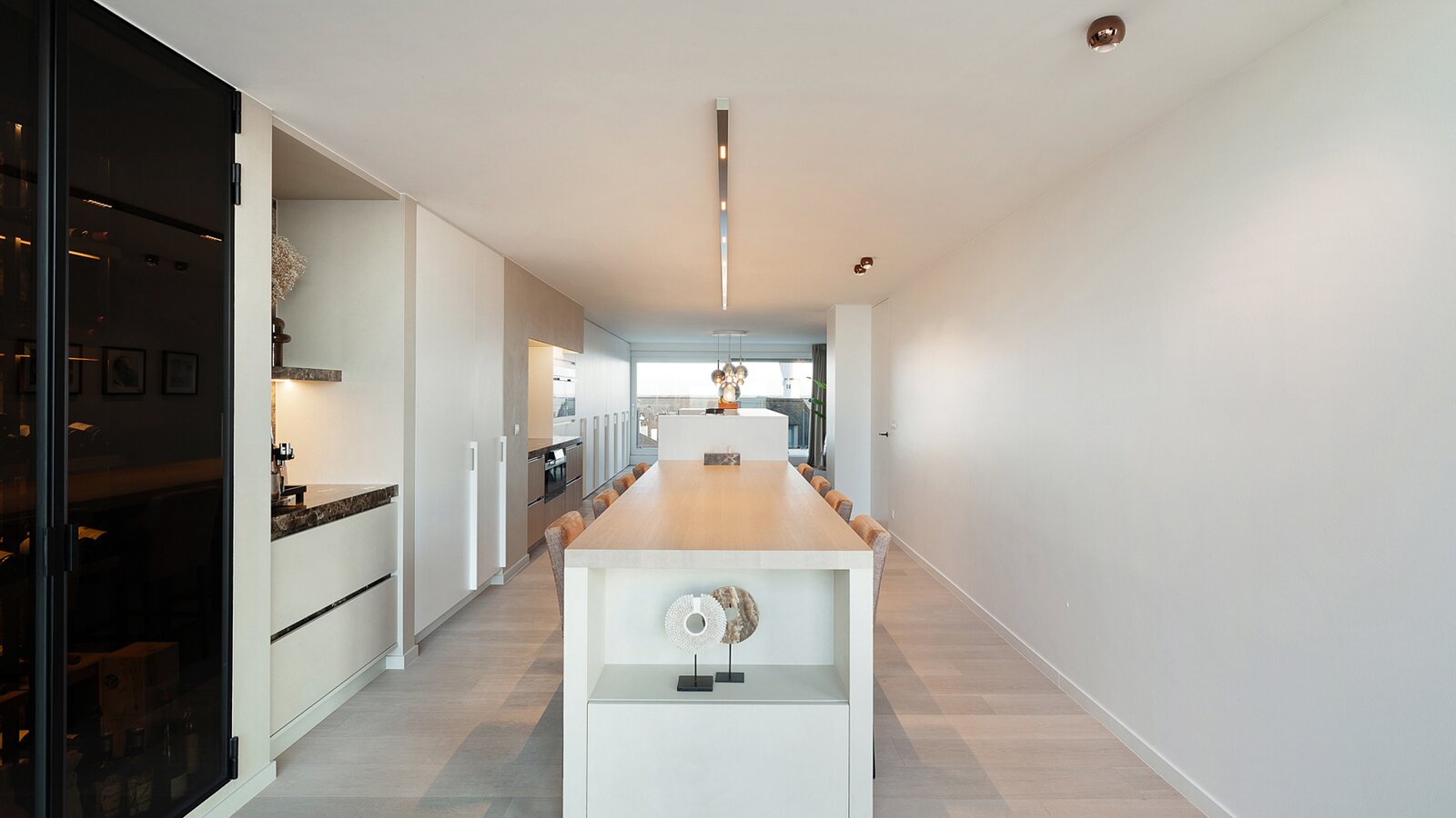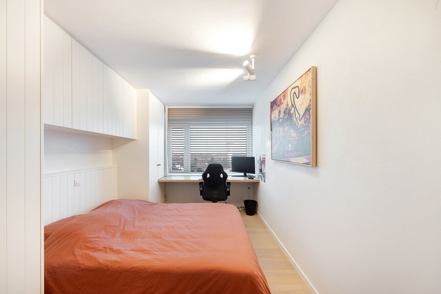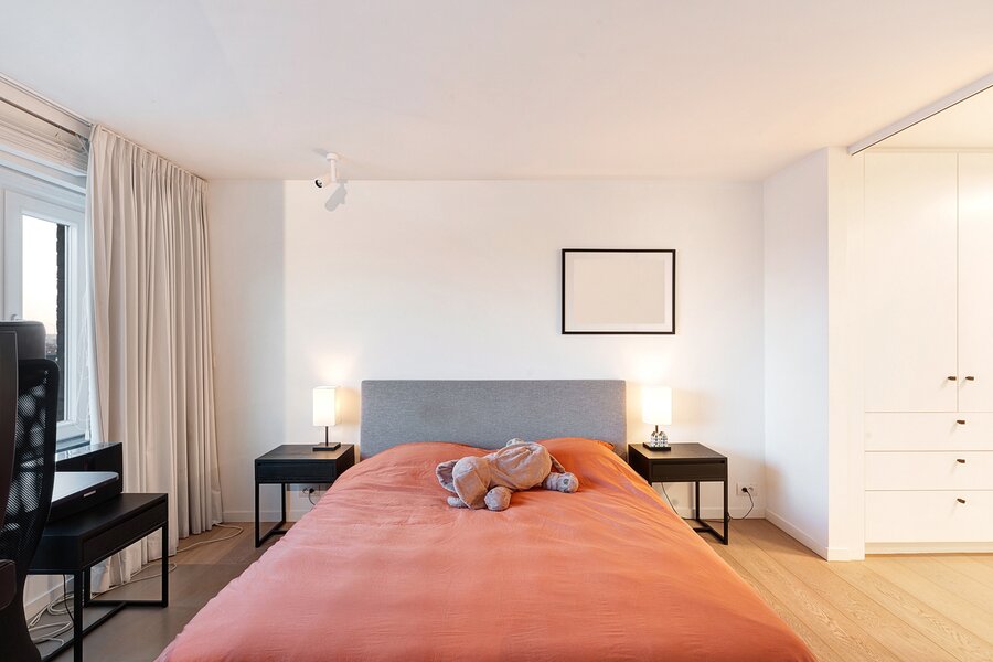Dit appartement is afgewerkt met duurzame materialen die niet alleen visueel aantrekkelijk zijn, maar ook een warme en uitnodigende sfeer creëren. De inrichting is zorgvuldig samengesteld, waardoor een perfecte balans tussen stijl en comfort ontstaat. De indrukwekkende terrassen zijn zonder twijfel een van de grootste troeven van deze mezzanine. Het ruime terras aan de voorzijde biedt panoramisch zeezicht, waar u dagelijks kunt genieten van het rustgevende geluid van de golven. Daarnaast is er een terras met uitzicht over het hinterland, met een schilderachtig zicht op Duinbergen en de omliggende polders.