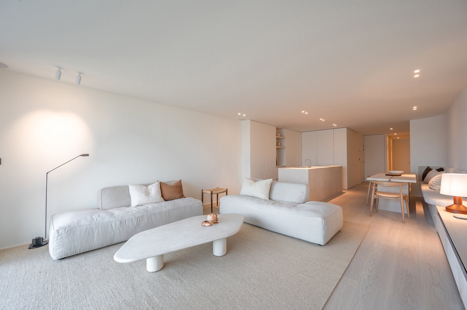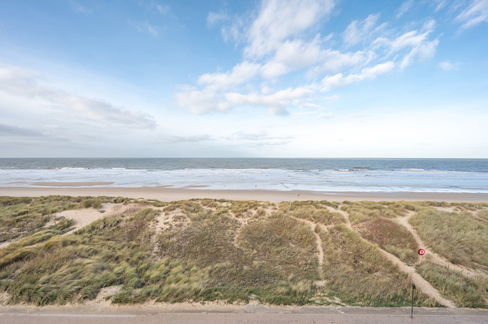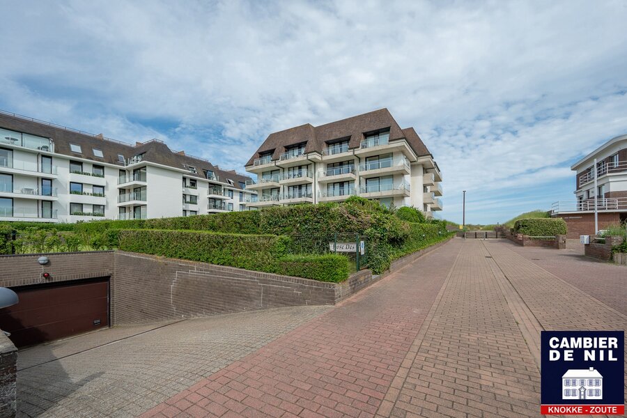 Magnifiek appartement in een standingvolle residentie gelegen op de wandeldijk in het Zoute. Uniek, panoramisch zeezicht. Samenstelling: inkomhal met vestiaire en toilet. Ruime woon- en eetkamer uitgevend op terras met oninneembaar zeezicht. Ingerichte open keuken. Hoofdslaapkamer met bijhorende douchekamer en uitgevend op het zuidgerichte terras. Tweede, goed geproportioneerde slaapkamer met praktische douchekamer, eveneens uitgevend op het zuidgericht terras. Wasplaats. Berging. Mogelijkheid tot aankoop van een garagebox in de benedenverdieping van de residentie. Grote gemeenschappelijke fietsenberging. Conciërge in het gebouw.