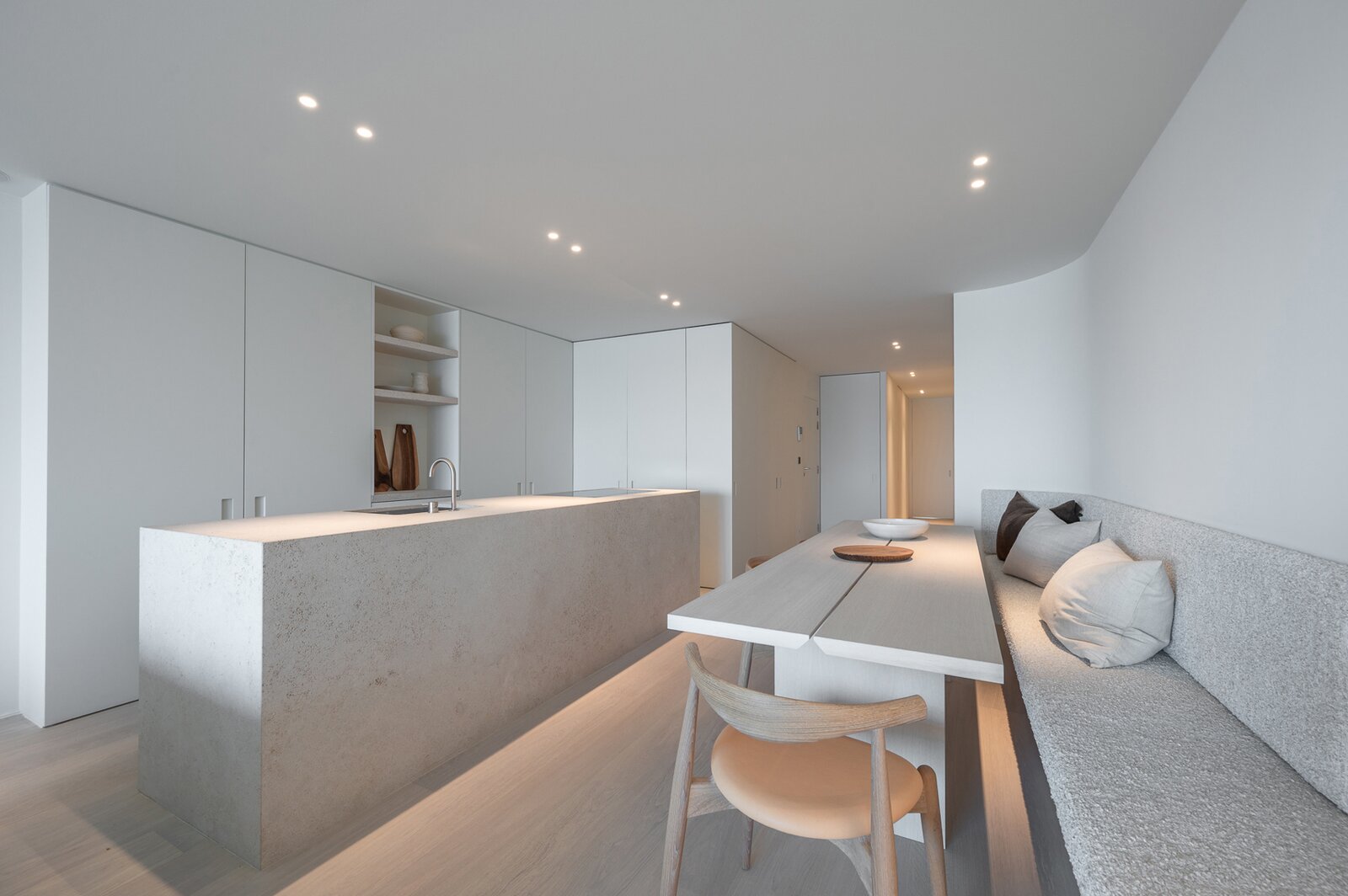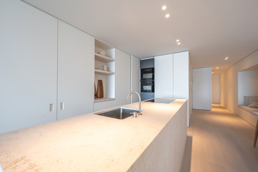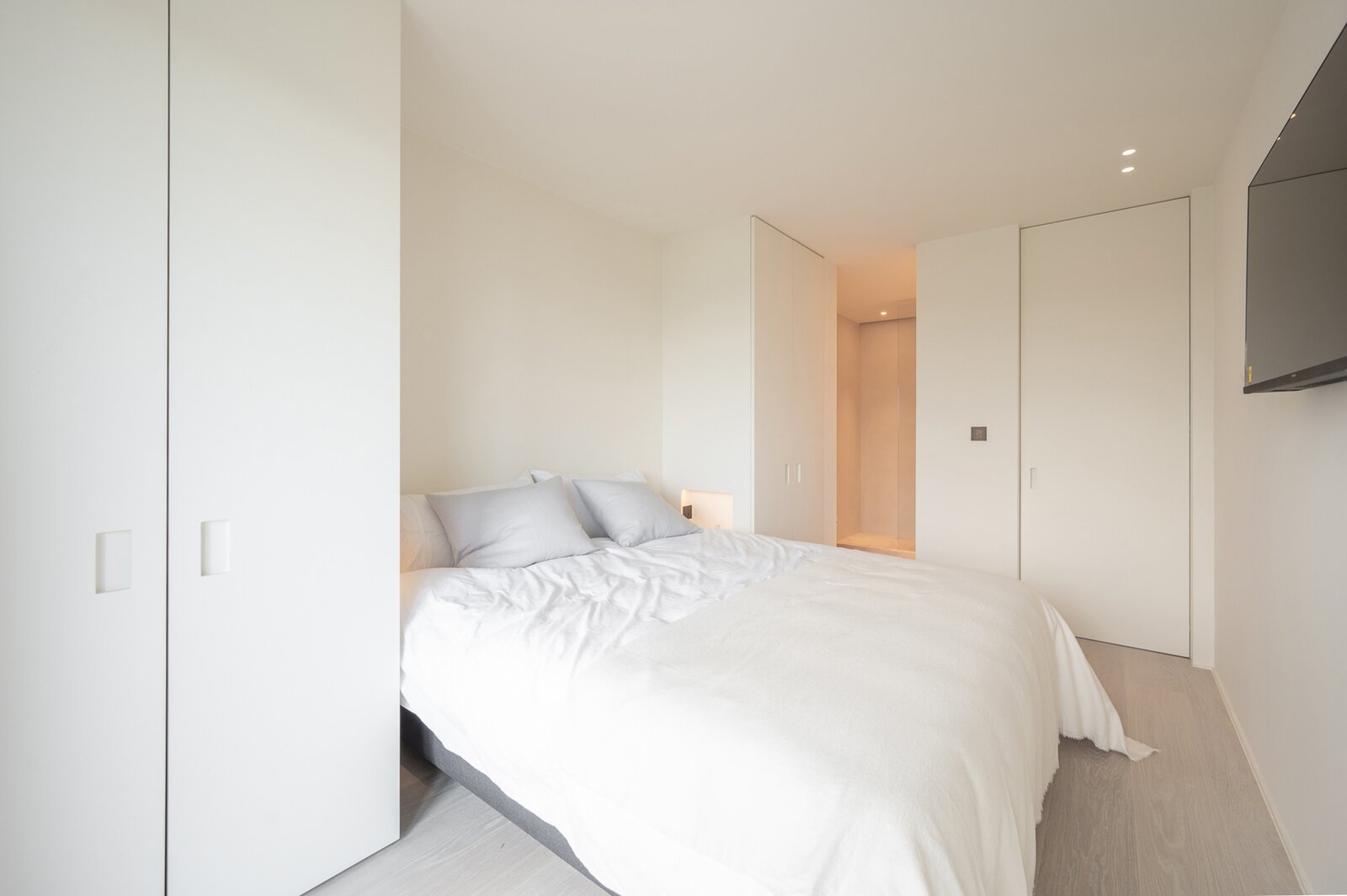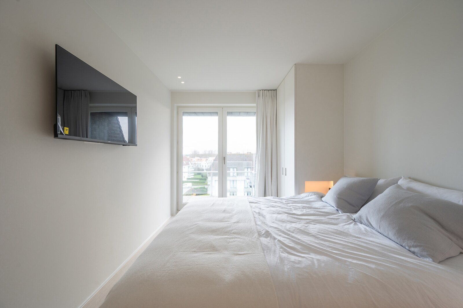 Magnifiek appartement in een standingvolle residentie gelegen op de wandeldijk in het Zoute. Uniek, panoramisch zeezicht. Samenstelling: inkomhal met vestiaire en toilet. Ruime woon- en eetkamer uitgevend op terras met oninneembaar zeezicht. Ingerichte open keuken. Hoofdslaapkamer met bijhorende douchekamer en uitgevend op het zuidgerichte terras. Tweede, goed geproportioneerde slaapkamer met praktische douchekamer, eveneens uitgevend op het zuidgericht terras. Wasplaats. Berging. Mogelijkheid tot aankoop van een garagebox in de benedenverdieping van de residentie. Grote gemeenschappelijke fietsenberging. Conciërge in het gebouw.