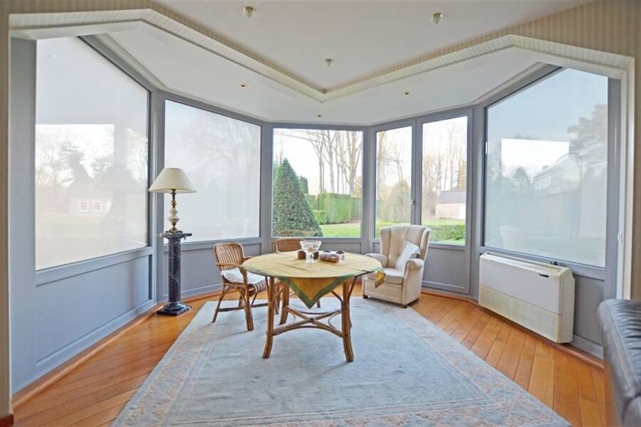 Extra’s: aangelegde tuin met verschillende terrassen, 31 zonnepanelen, airco, zonwerend glas, Flam kachel, inbouwspots, screens, tuinverlichting en –beregening, houten ramen, parket, vloerverwarming, …