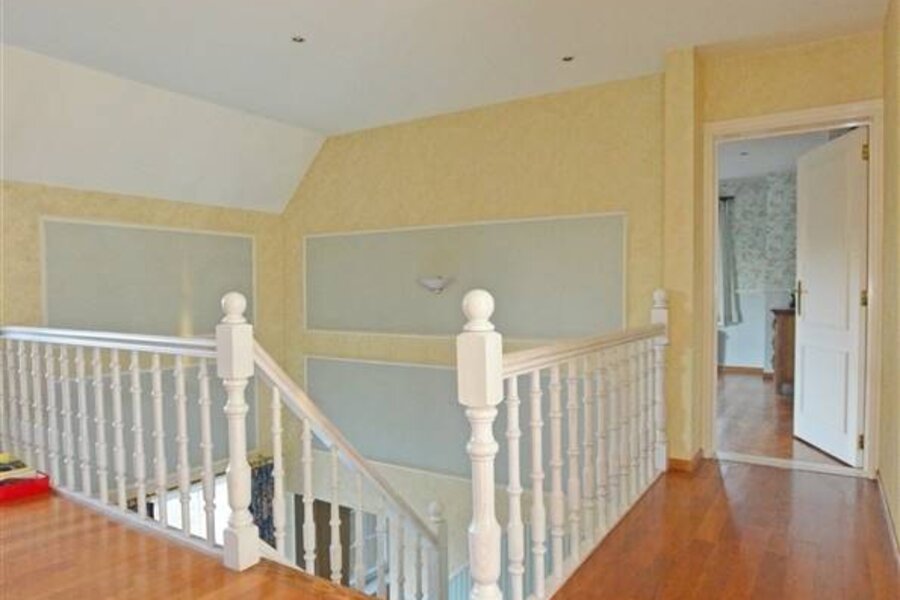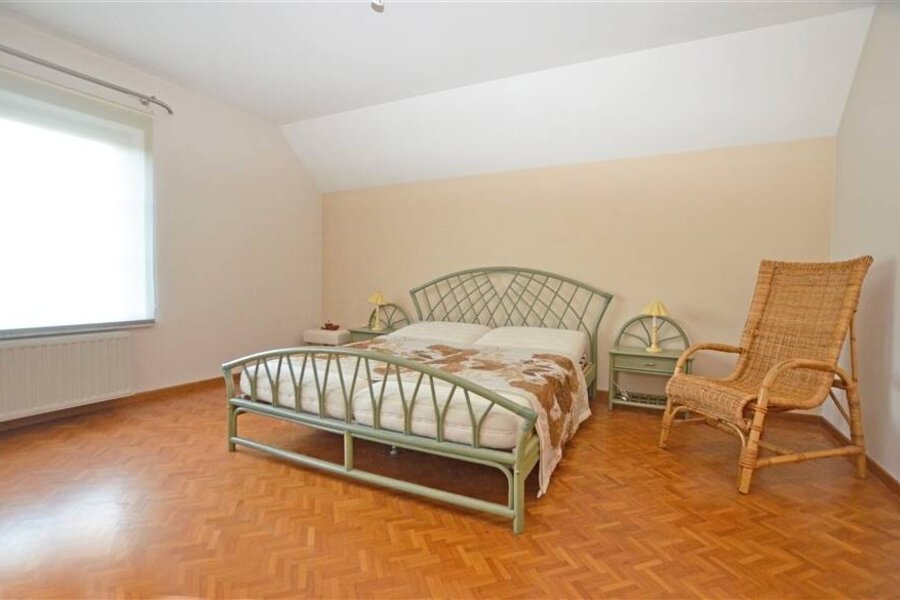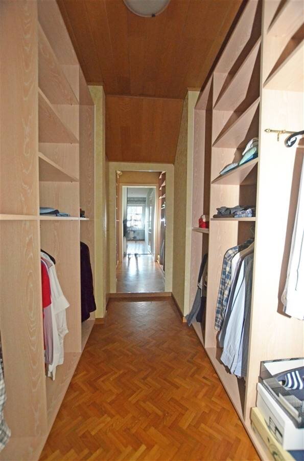 Op de verdieping leidt de overloop naar het mastergedeelte, uitgerust met een dressing en een eigen badkamer. Daarnaast zijn er twee ruime slaapkamers met inbouwkasten, een aparte douchekamer en een derde, kleinere slaapkamer, die directe toegang biedt tot de zolder. Deze zolder is volledig geïsoleerd en creëert bijkomende mogelijkheden voor extra ruimte of berging.