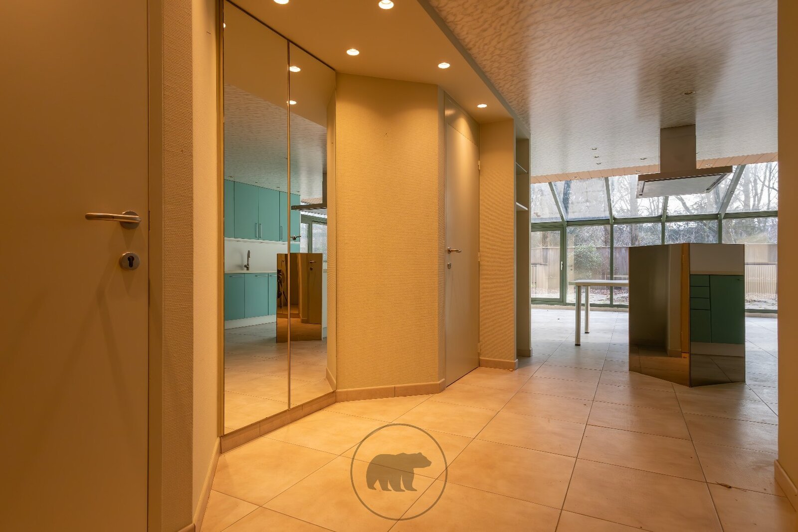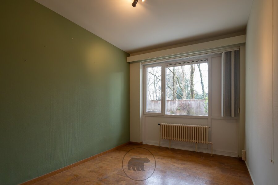De indeling omvat 4 slaapkamers, sanitair, een ingerichte keuken, salon met haard en een lichtrijke leefruimte met veranda die uitgeeft op het ruime zuidgerichte terras (140 vierkante meter). Vanop het terras geniet u van een rustgevend uitzicht op groen en volwassen bomen.