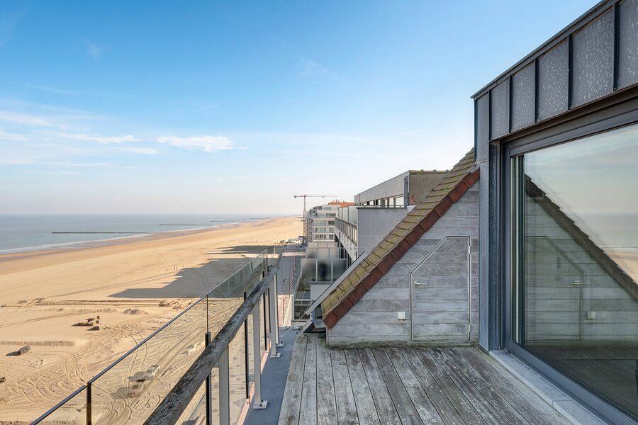Op een unieke locatie aan het Blue Buddha-strand, vlakbij de zeilclub van Duinbergen, vindt u dit schitterende dakappartement-duplex (194m² inclusief 29m² aan terrassen) met een prachtig uitzicht op zee én op het hinterland. Deze exclusieve penthouse biedt een uitzonderlijke woonervaring met veel natuurlijke lichtinval, 4 ruime slaapkamers en 3 mooie zonneterrassen. Mogelijkheid tot aankoop van 2 garageboxen in het gebouw van dezelfde eigenaar.